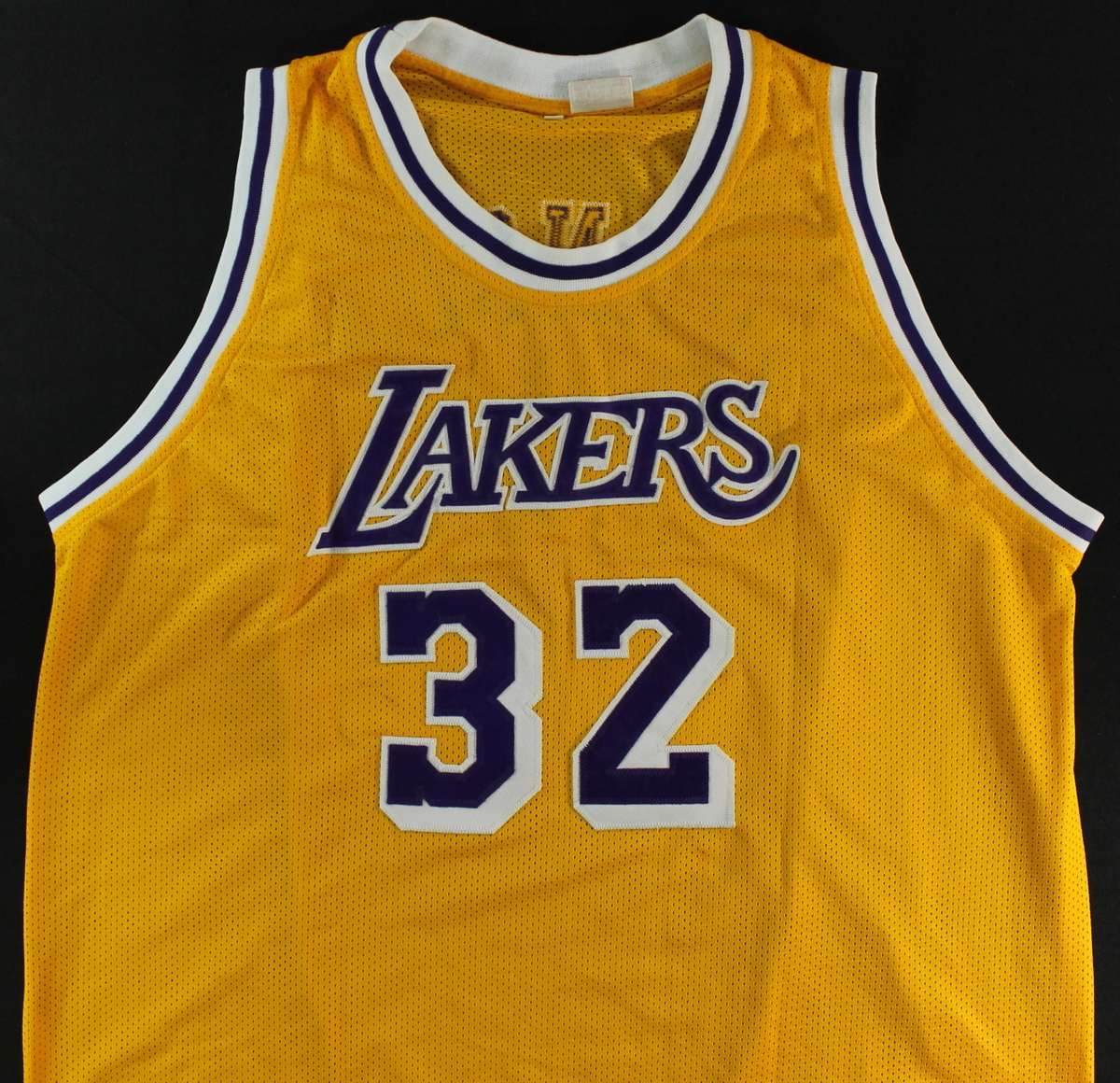 Custom on-court style jersey. Everything sewn on, size XL. Hand-signed in silver paint pen by Magic Johnson (Lakers HOF).