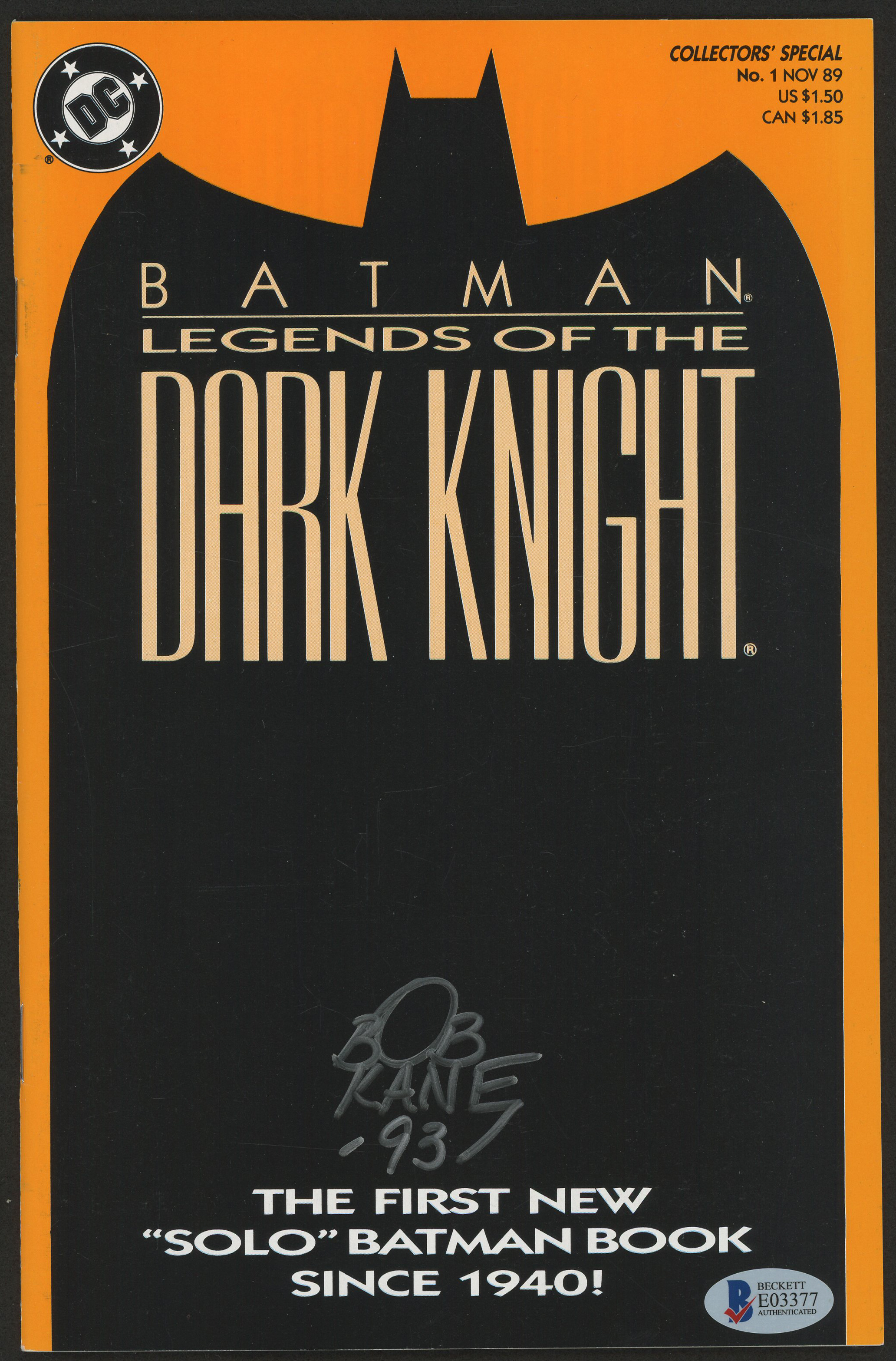 Bob Kane Signed 1989 "Batman: Legends of the Dark Knight" Issue #1 DC Comic Book Inscribed "-93" (Beckett COA)
