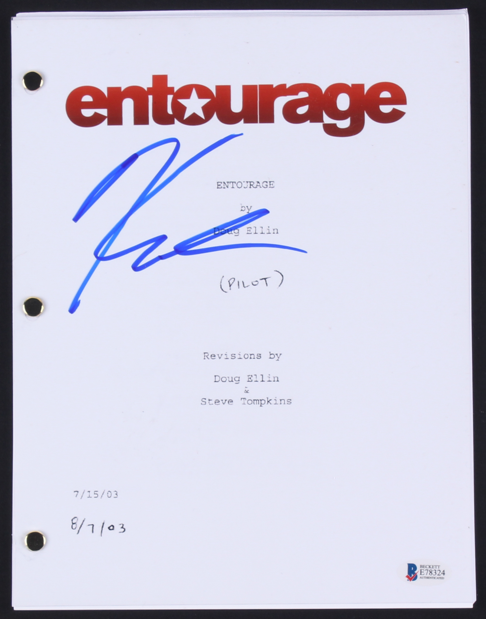 Kevin Connolly Signed "Entourage" Full Pilot Script (Beckett COA)