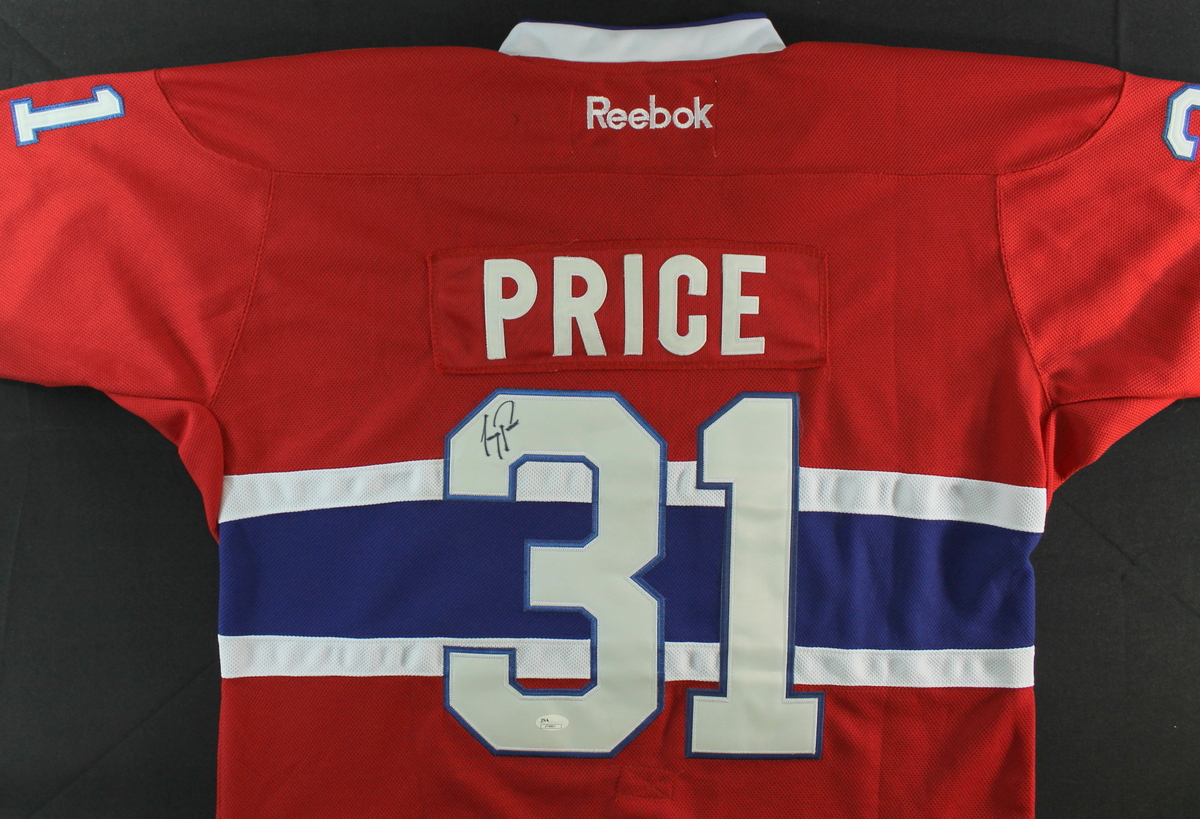 Reebok on-ice style jersey. Everything sewn on, size 52. Hand-signed in black felt tip pen by Carey Price. The autograph includes an official James Spence Authentication (JSA) hologram and matching COA for authenticity purposes.