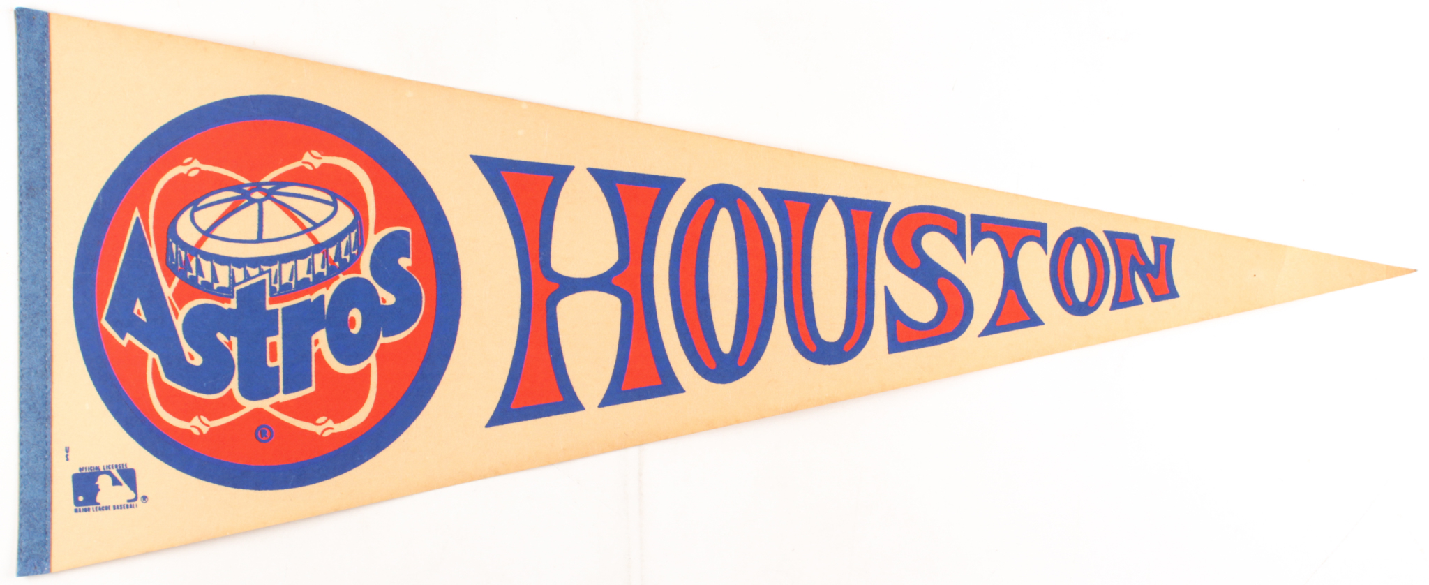 Vintage 1969 Houston Astros Pennant. The pennant flag measures approximately 28.5" long. Please note, the pennant shows signs of wear due to aging.