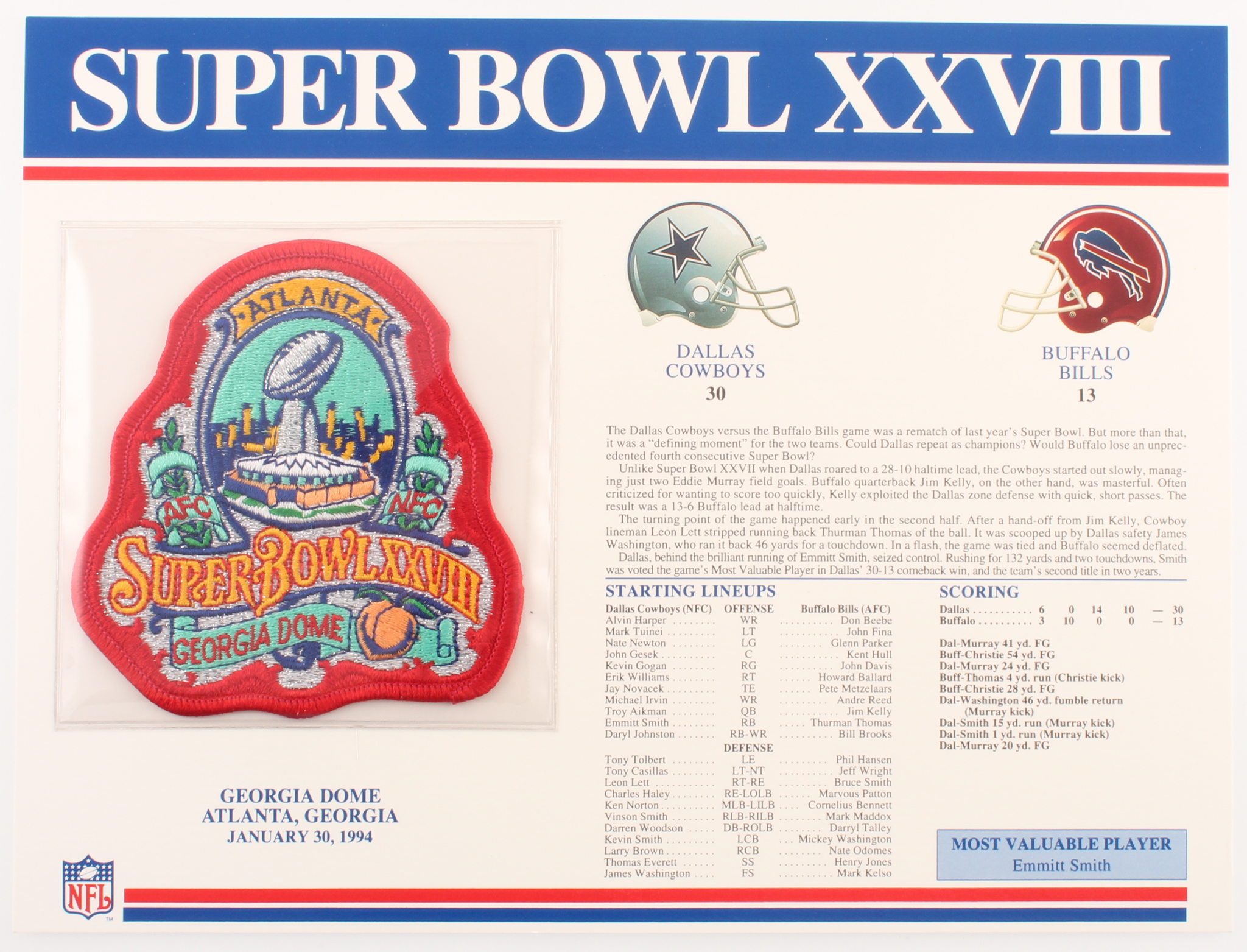 Commemorative Super Bowl XXVIII Card with Patch: Cowboys vs. Bills