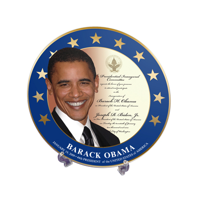 Now you can own a piece of history! Celebrate the Inauguration of our 44th President of the United States. America's first African American Commander with the commemorative plate. Features an image of the official Inauguration Invitation. Limited Edition plate available for 44 firing days trimmed in 24K gold.