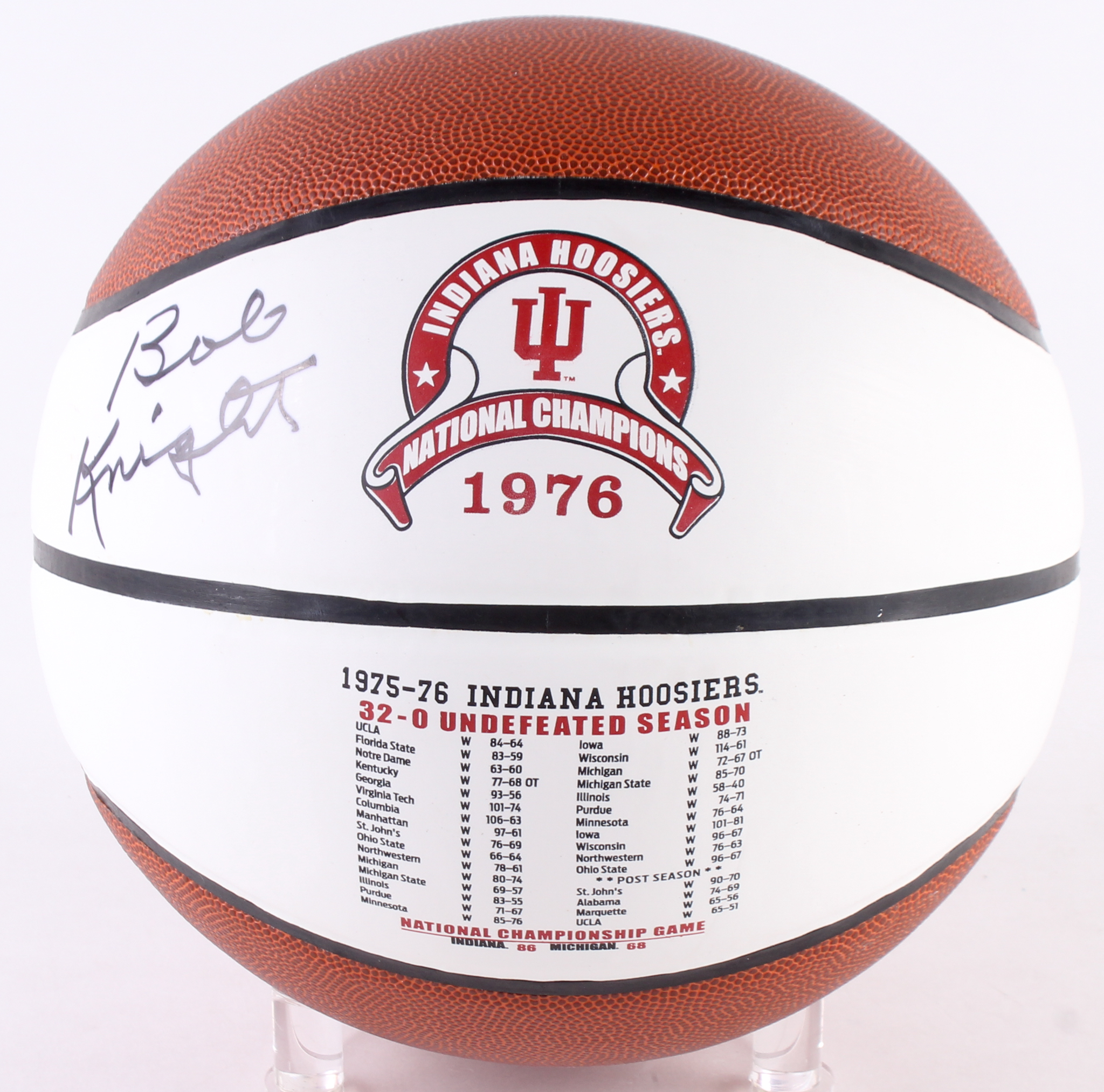 Bob Knight Signed Indiana Hoosiers 1976 National Champions Logo Basketball (JSA COA)