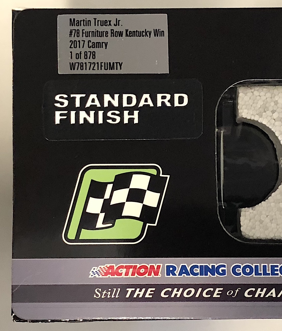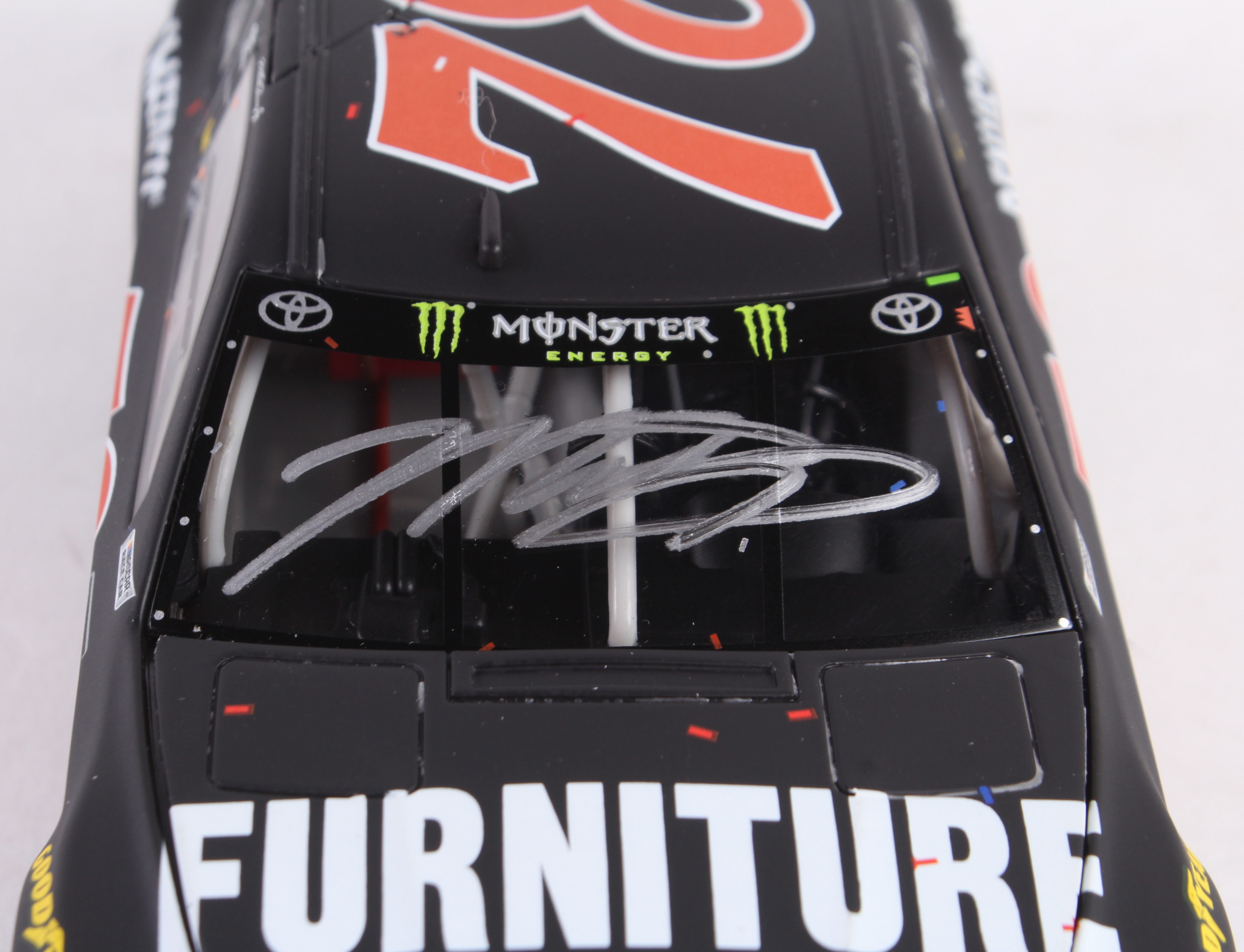 Premium die-cast car hand-signed on the windshield in silver paint pen by Martin Truex Jr. The car is limited edition to just 878 produced and includes the original packaging.