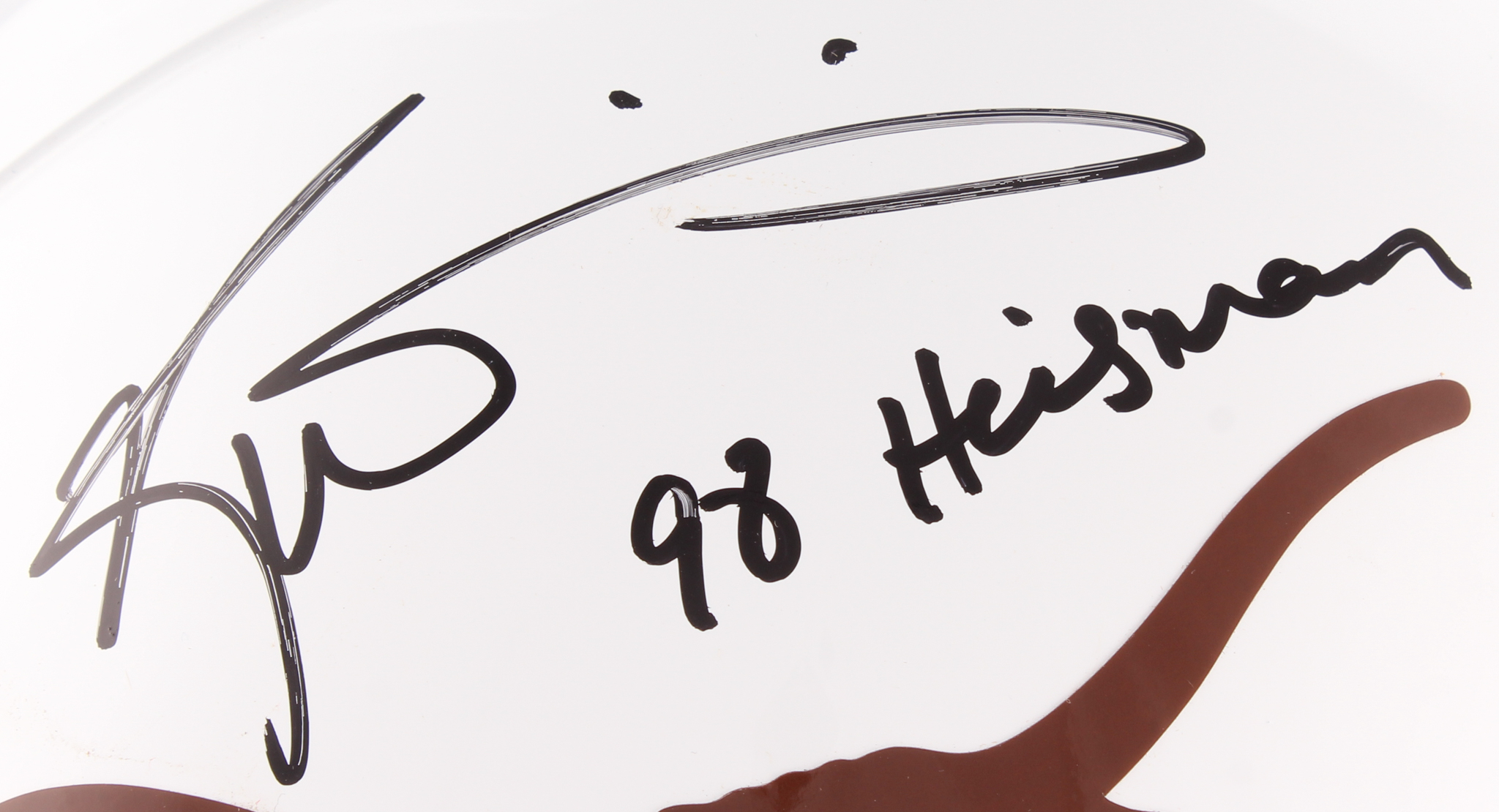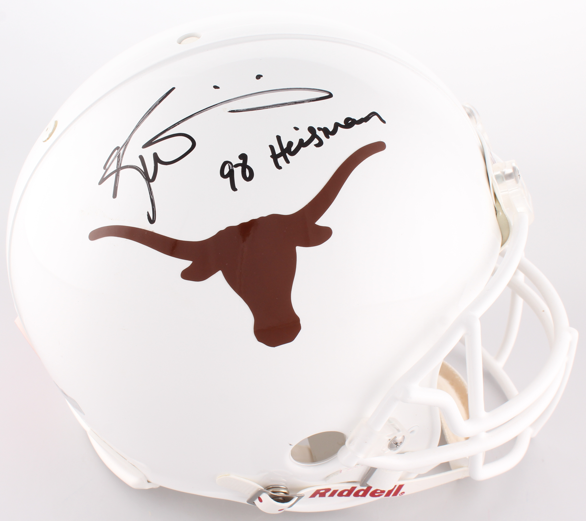 Riddell Texas Longhorns full-size authentic on-field throwback helmet. Hand-signed in black felt-tip pen by Ricky Williams.