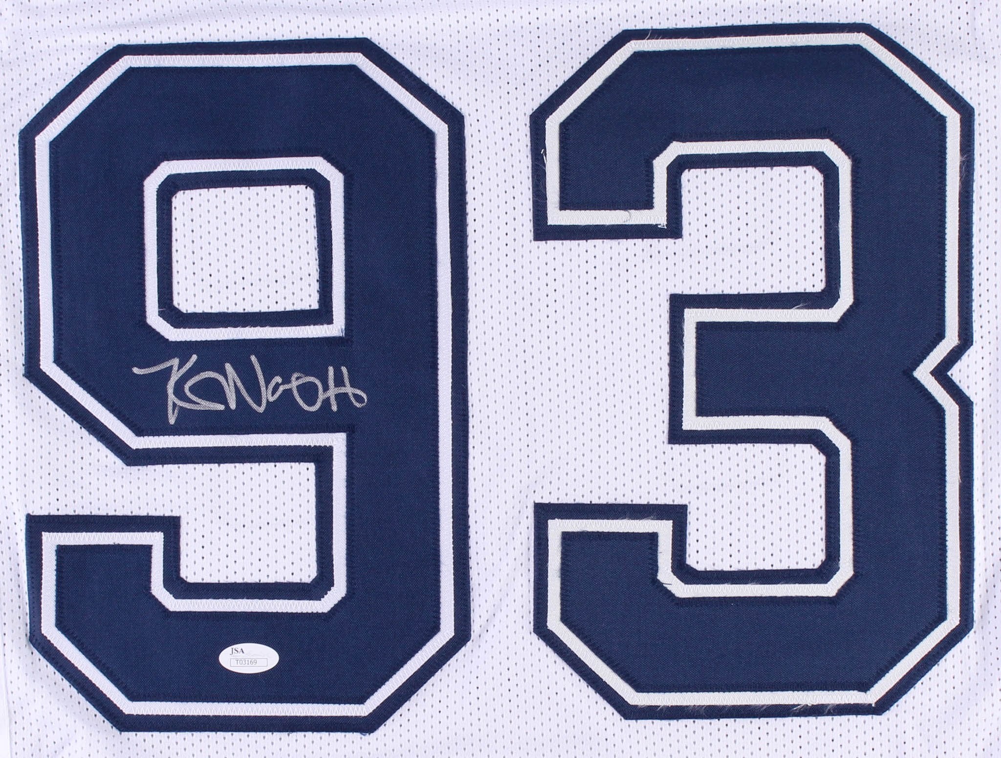 Custom on-field style jersey. Everything is sewn on, size XL. Hand-signed in silver paint pen by Kevin Nash.