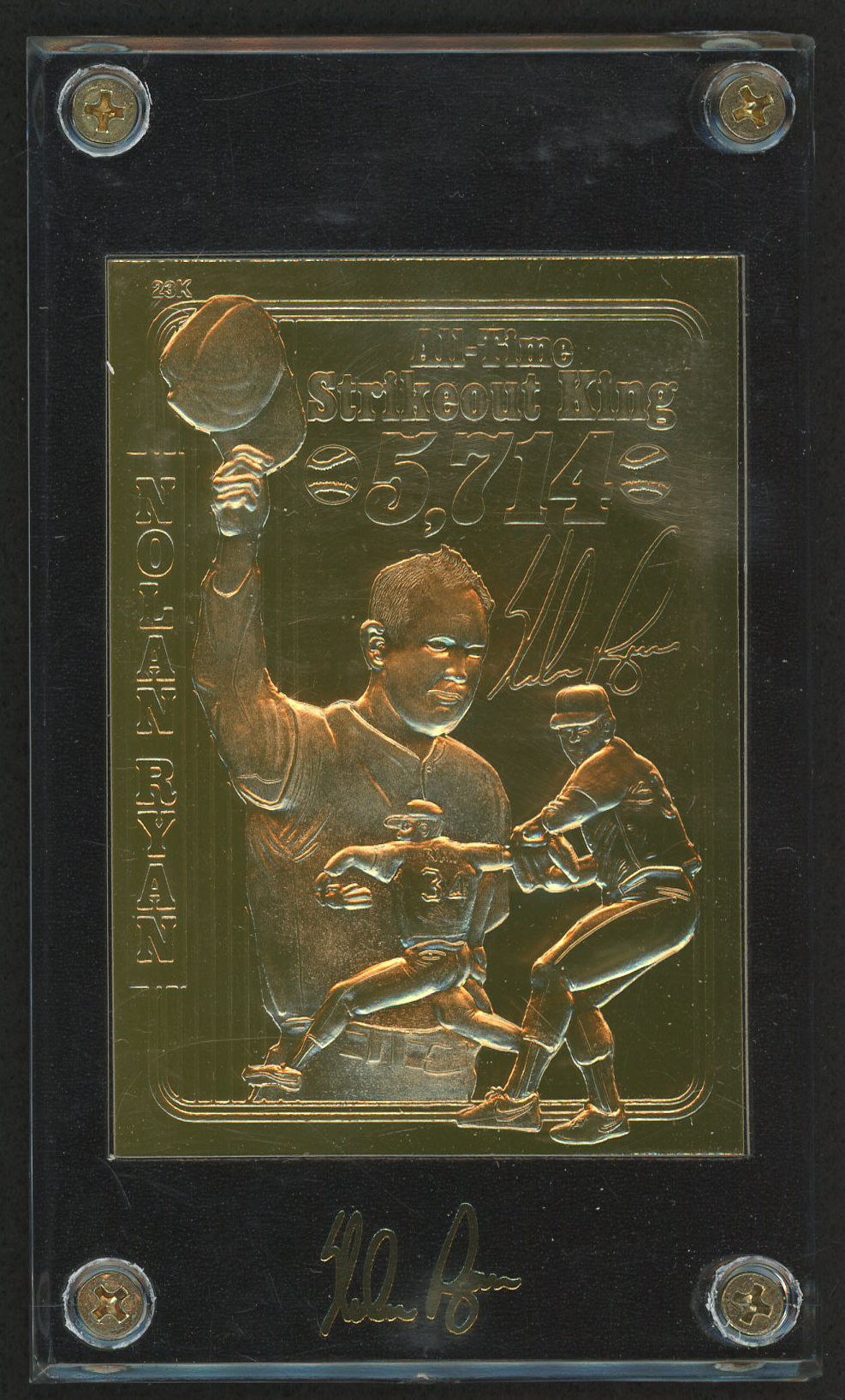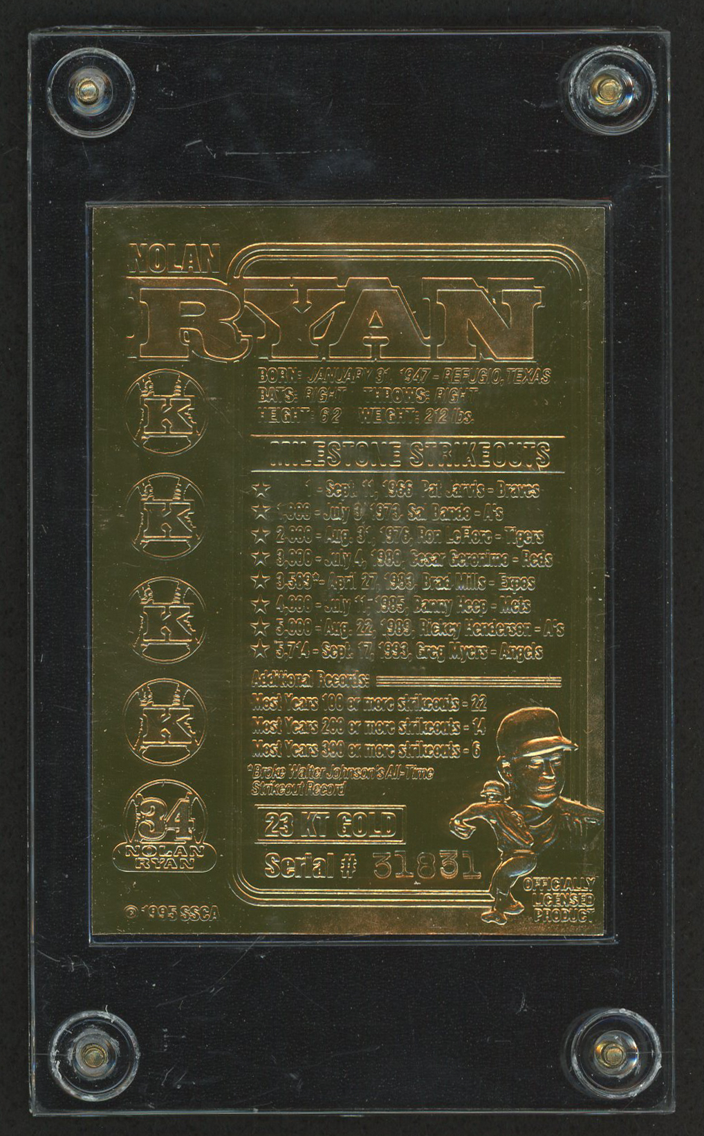 1997 SSCA Nolan Ryan "All-Time Strikeout King – 5,714" LE 23 Karat Gold Baseball Card