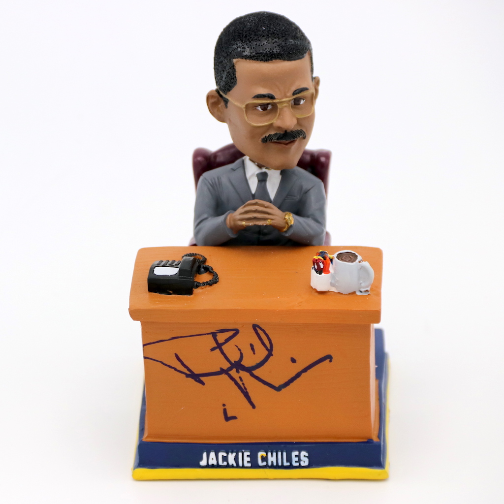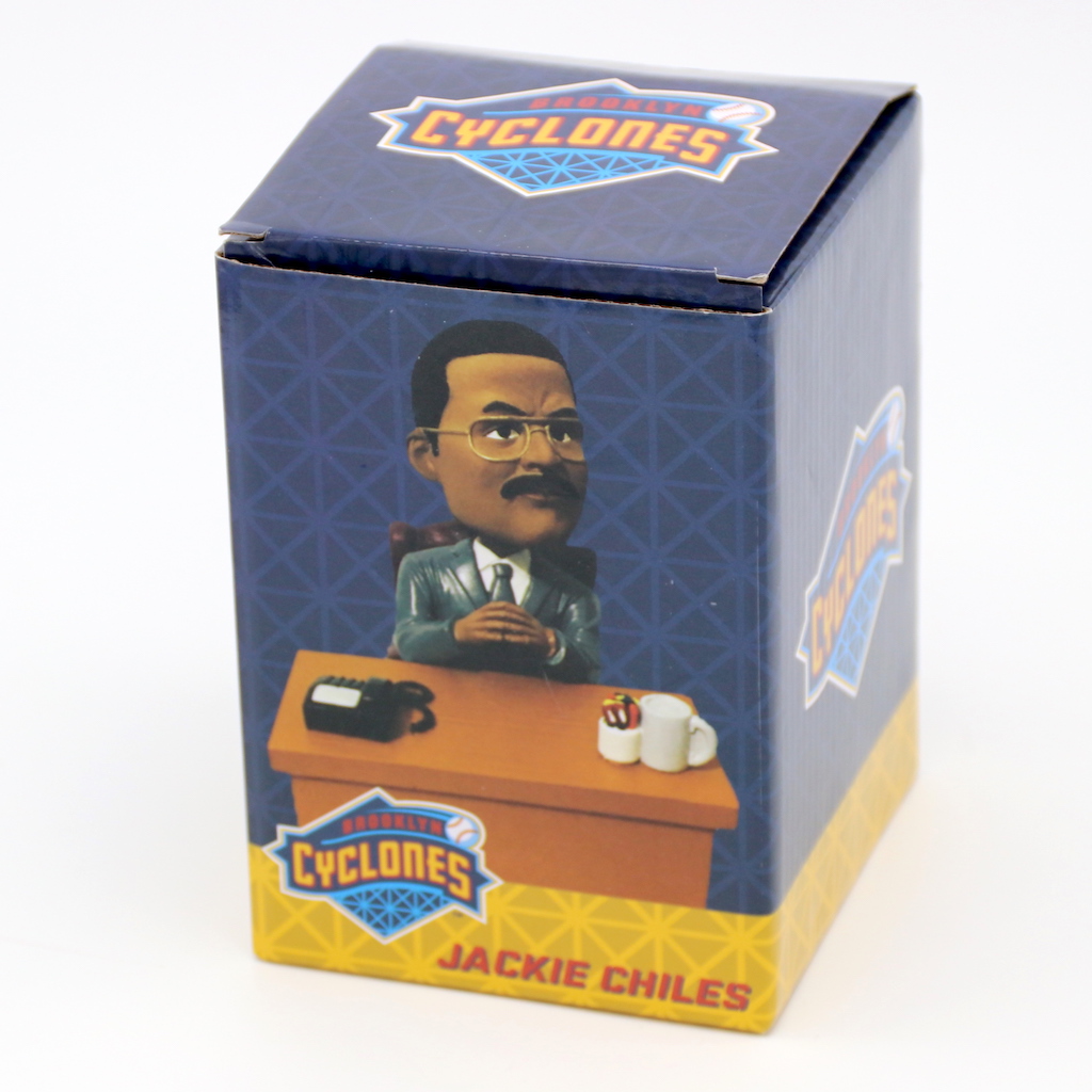 Brooklyn Cyclones "Seinfeld - Jackie Chiles" bobblehead figurine has been hand-signed in blue felt-tip pen by Phil Morris. Includes original packaging shown.