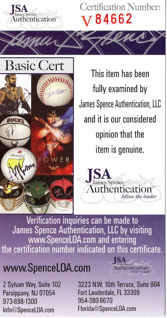 The lot / autograph(s) includes an official James Spence Authentication (JSA) hologram and matching COA for authenticity purposes.