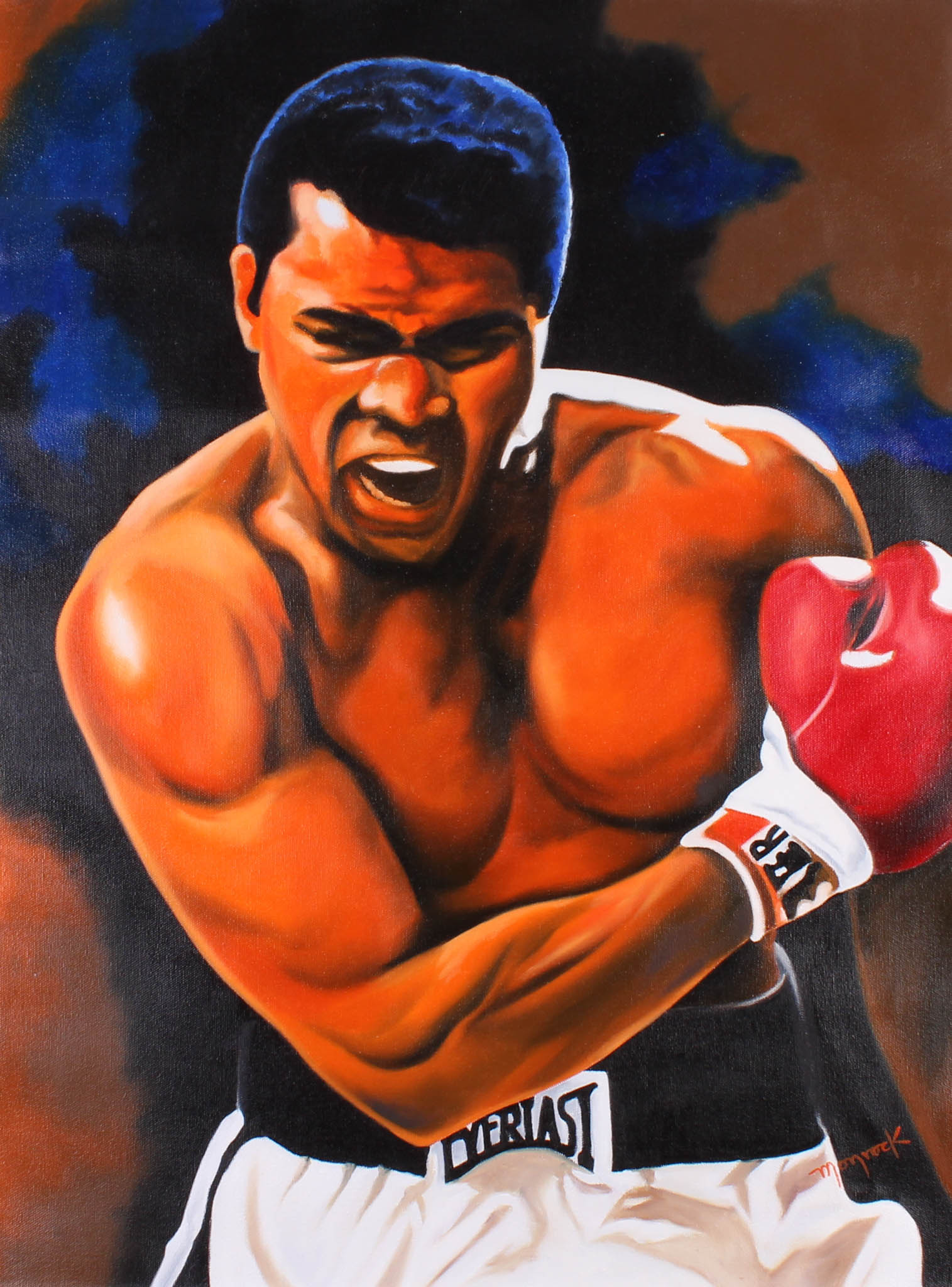 Canvas measures 25.5" x 33.5" in size. "Muhammad Ali" is an oil painting on canvas that has been hand signed in paint by the artist, Hector Monroy.