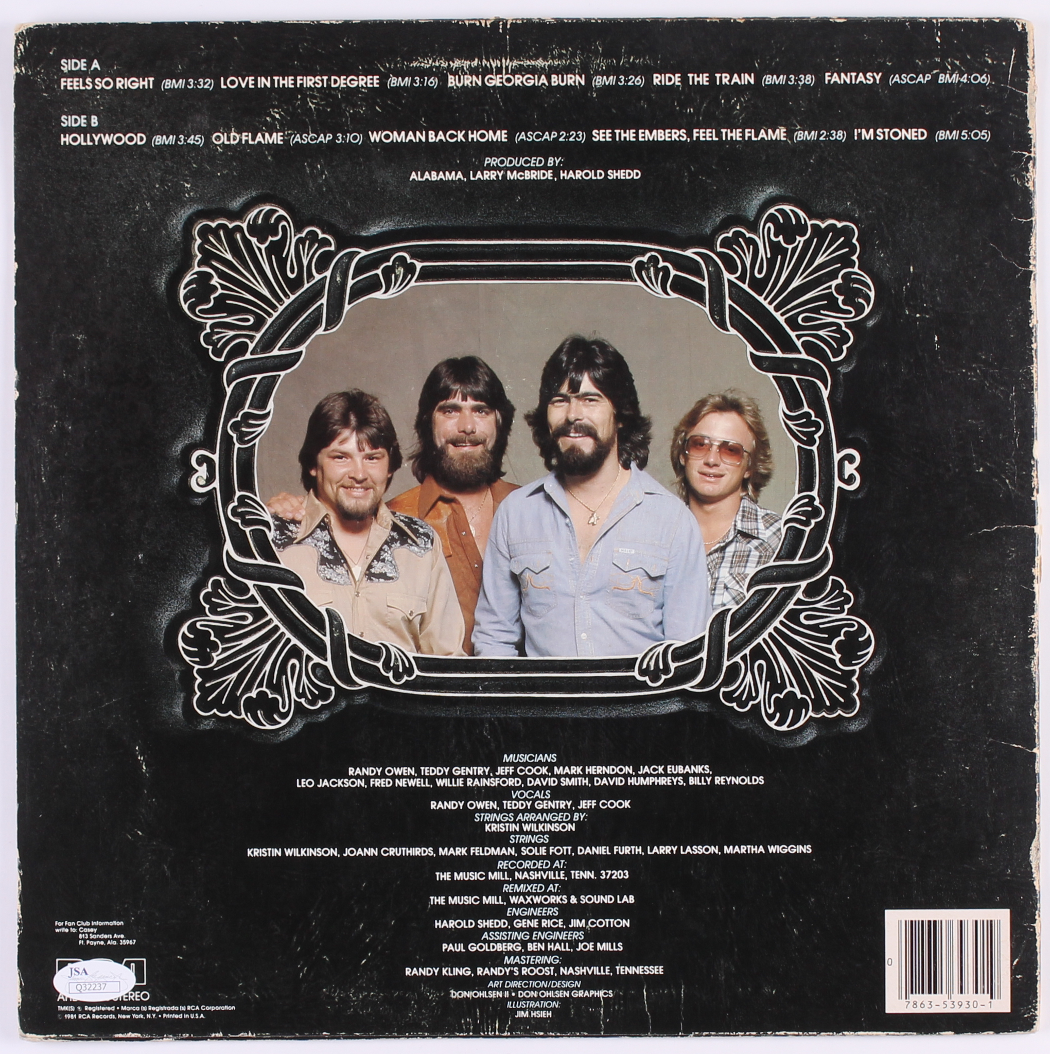 Randy Owen Signed Alabama "Feels So Right" Vinyl Record Album (JSA COA)