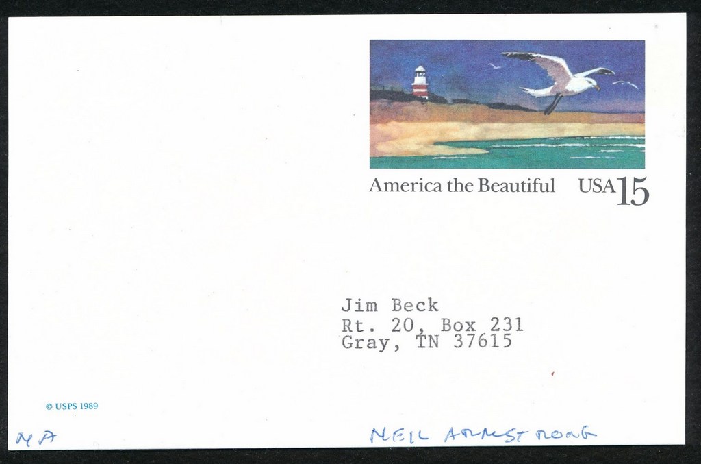 Blank white index card measures 3.5" x 5.5" in size and is hand-signed and personalized "To Jim Beck" in bold black ink by Neil Armstrong (D 2012).