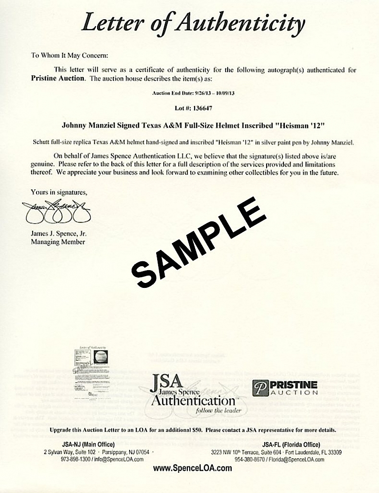 The personalization could be easily matted out to create a beautiful framed piece. The autograph includes a James Spence Authentication (JSA) Auction House LOA for authenticity purposes.