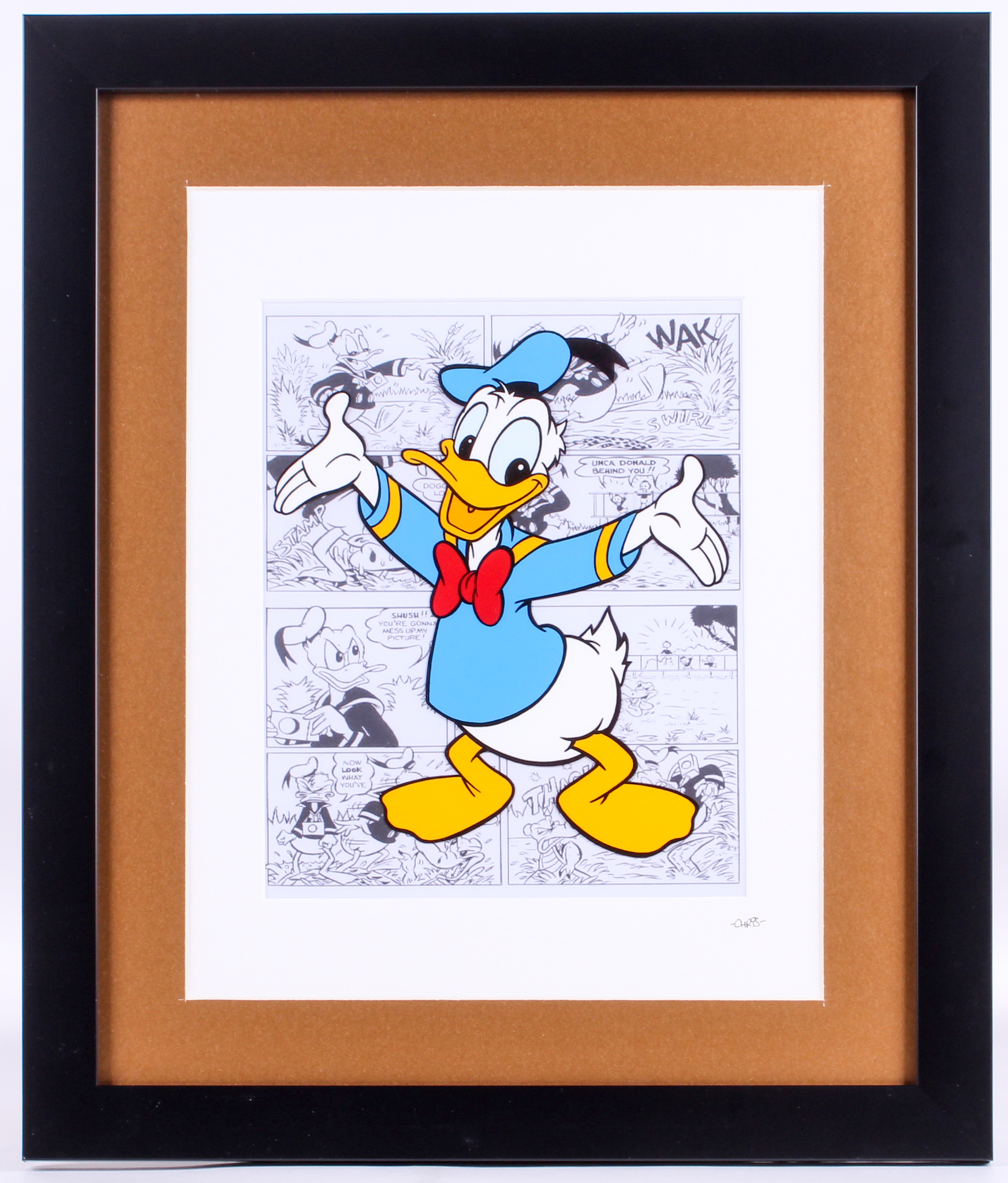Walt Disney's "Donald Duck" 16x19 Custom Framed Hand-Painted Animation Serigraph Display