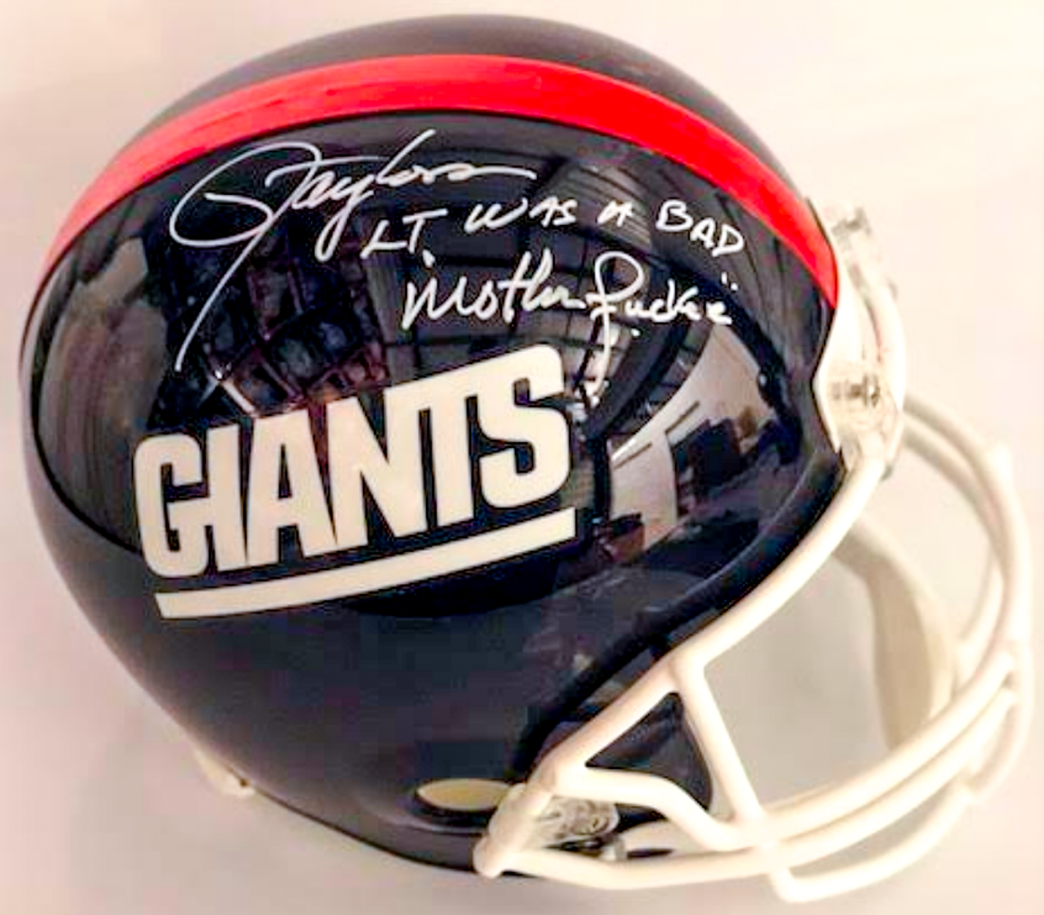 Lawrence Taylor Signed Giants Full-Size Throwback Helmet Inscribed "LT Was a Bad Motherf*****" (Beckett COA)