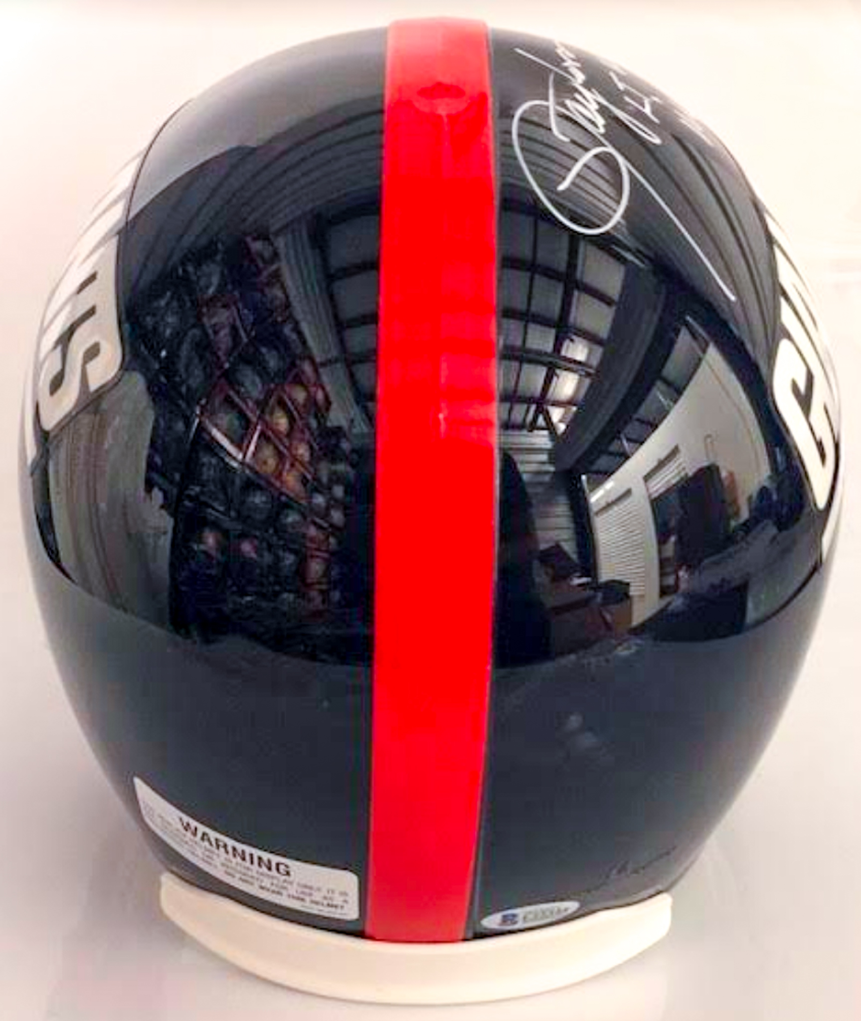 Riddell New York Giants full-size replica throwback helmet has been hand-signed and inscribed in silver paint pen by Lawrence Taylor (HOF).
