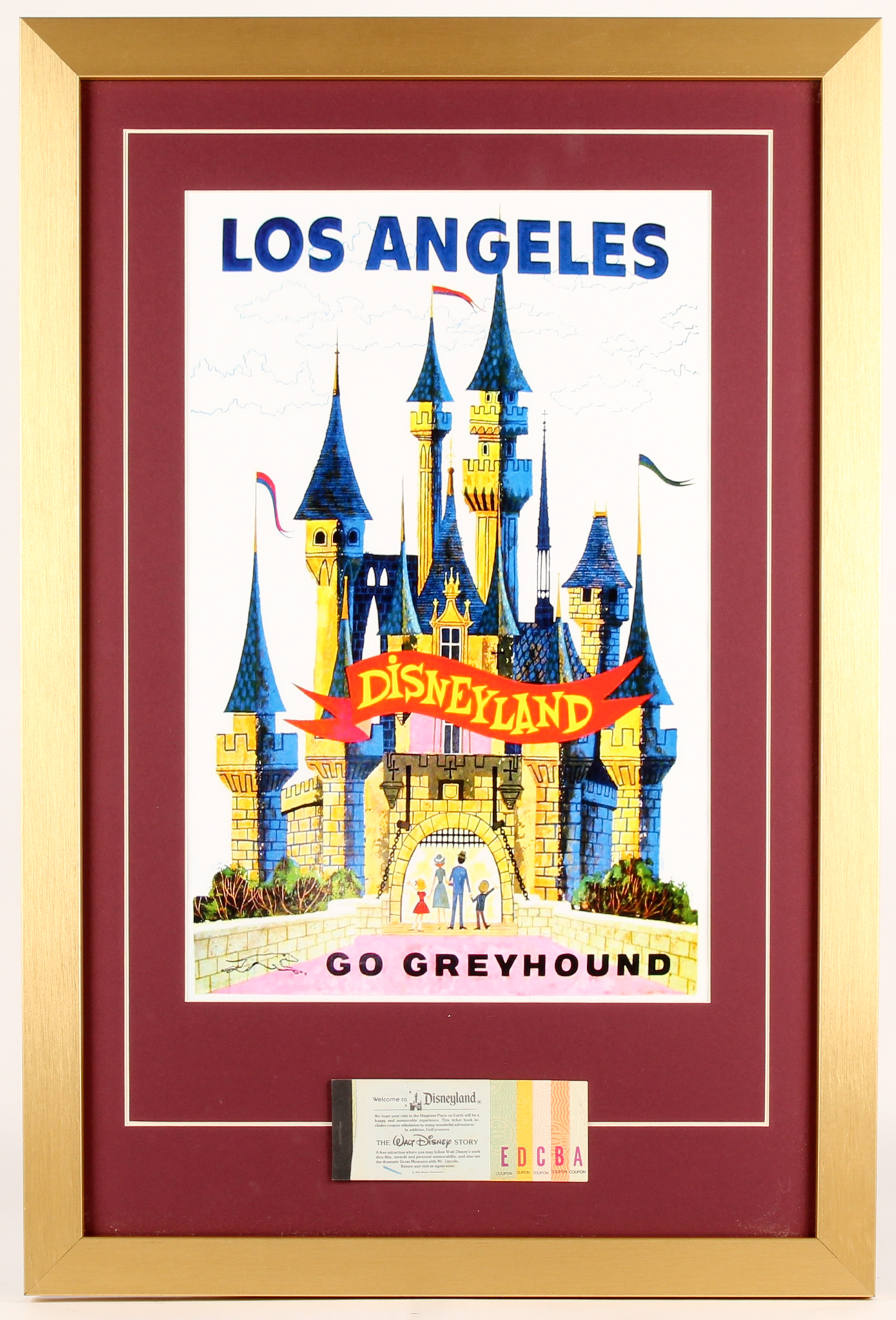 Disneyland's 17.5x26 Custom Framed Poster Print Display with Vintage Ticket