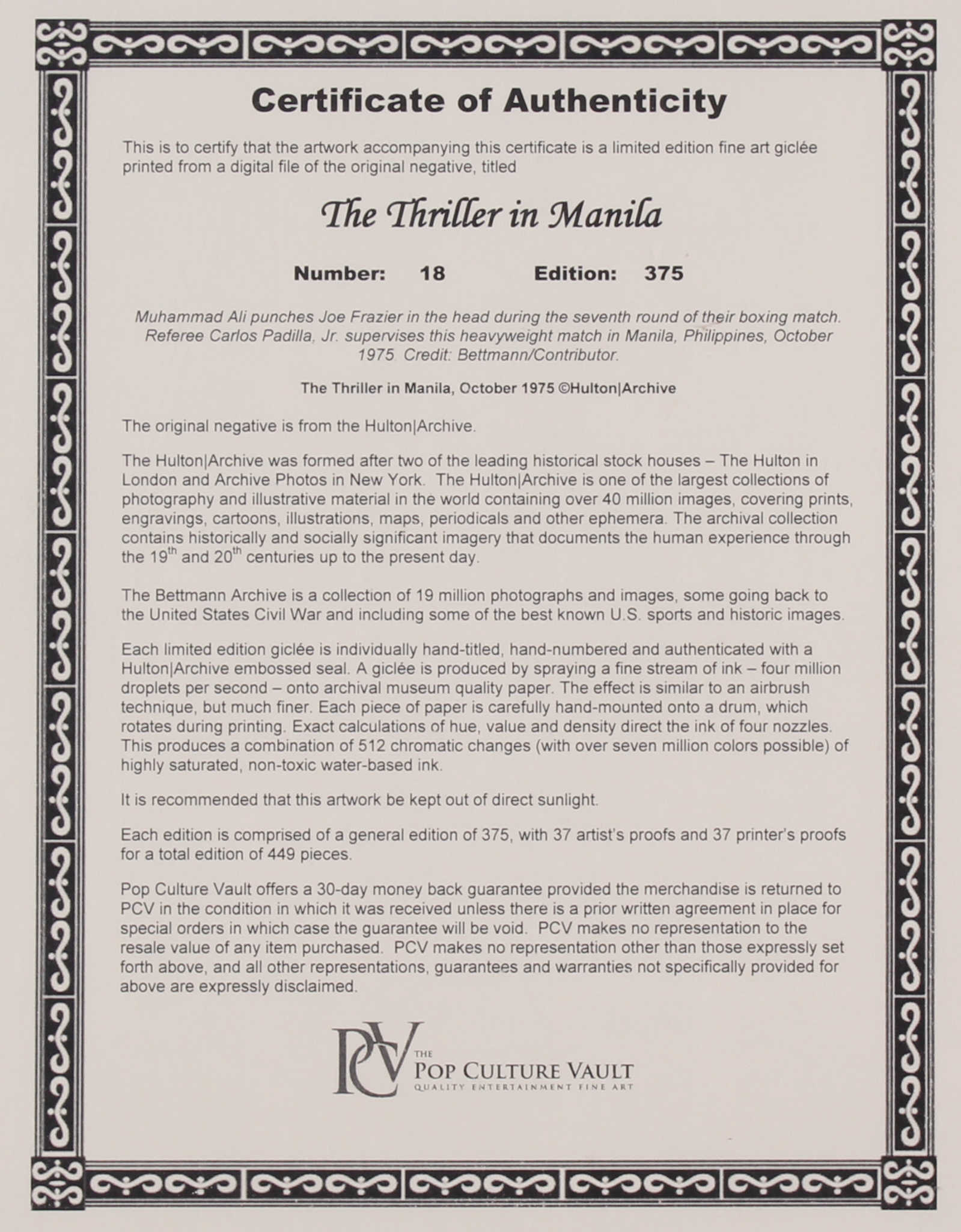 The Hulton Archive - Muhammad Ali vs. Joe Frazier "The Thriller in Manilla" Limited Edition 17x22 Fine Art Giclee on Paper #/375 (PA LOA & PCV COA)