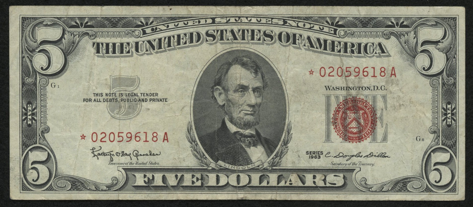 Star Note - 1963 $5 Five-Dollar Red Seal United States Legal Tender Bank Note