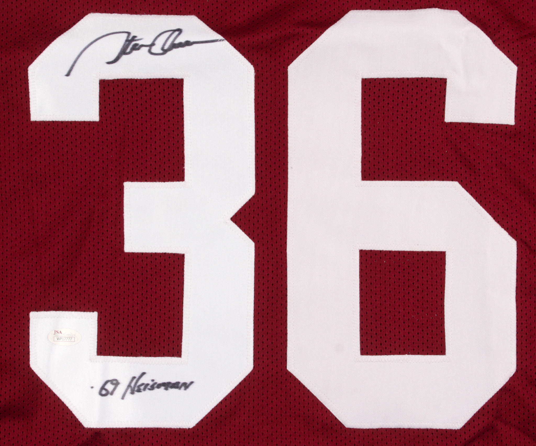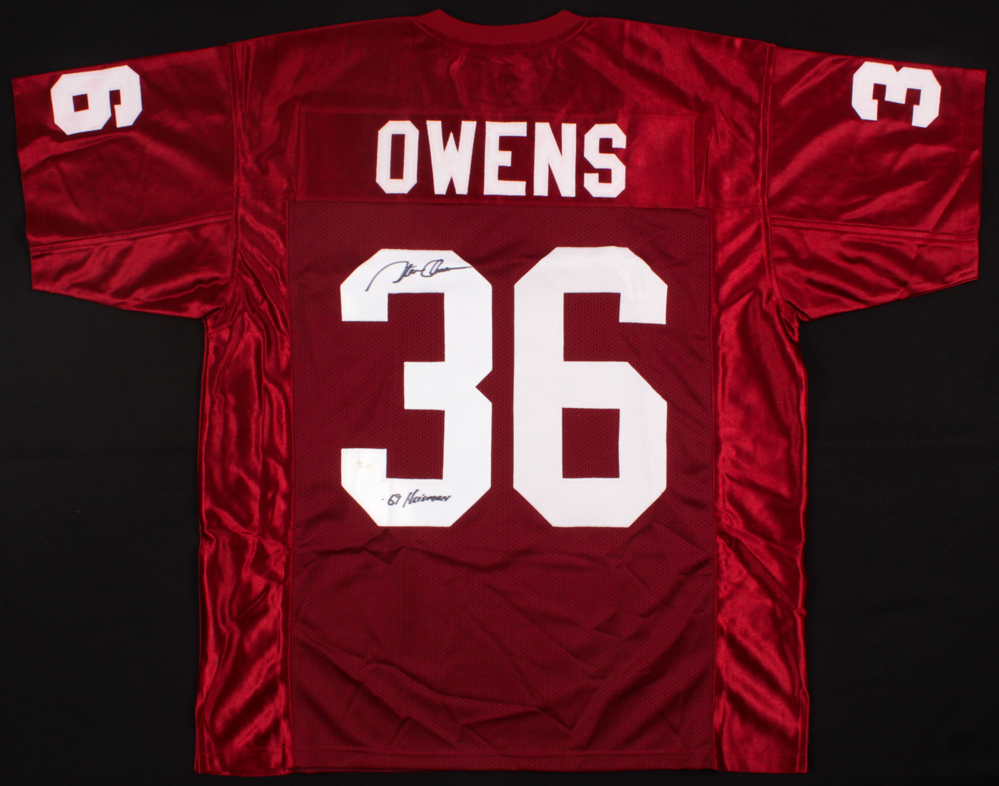 Steve Owens Signed Oklahoma Sooners Jersey Inscribed "'69 Heisman" (JSA COA)