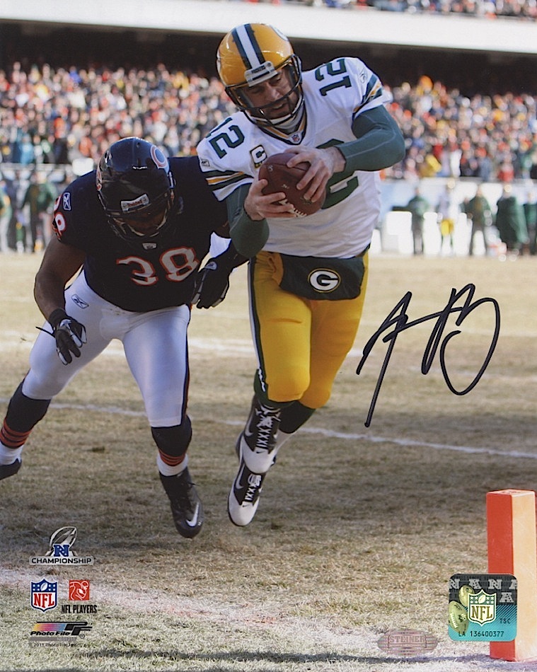 Photo measures 8" x 10" in size and has been hand-signed in black felt tip pen by Aaron Rodgers. Autograph includes an official Steiner Sports hologram for authenticity purposes.
