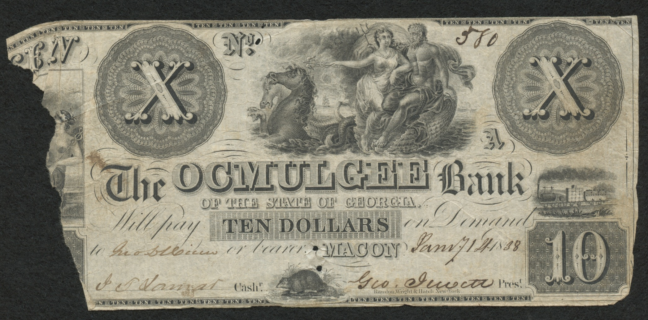 1838 $10 Ten Dollar - The State of Georgia Bank Note