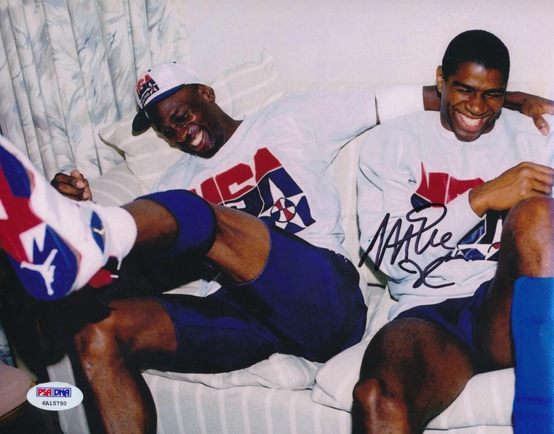 Magic Johnson Signed Team USA 8x10 Photo With Michael Jordan (PSA COA)