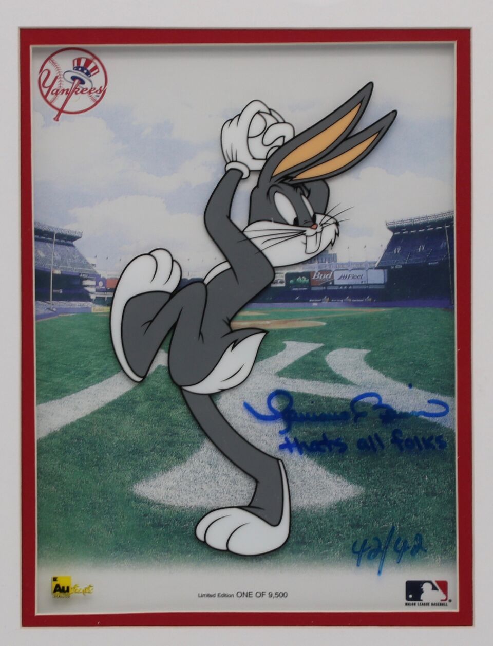 Mariano Rivera Signed LE Yankees Bugs Bunny 10x15 Framed Animation Cel Display Inscribed "That's All Folks" (JSA LOA)
