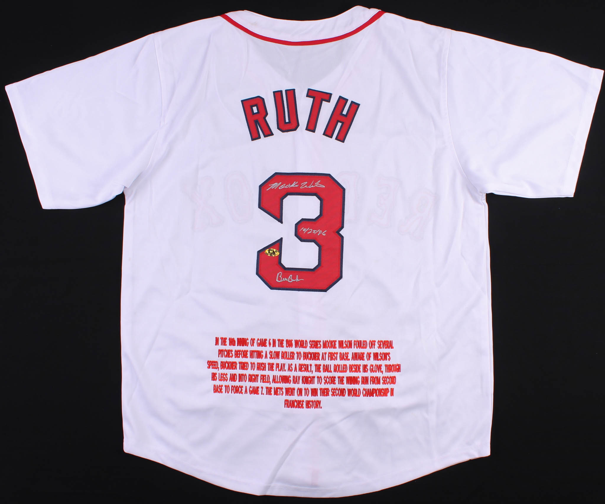 Bill Buckner & Mookie Wilson Signed Red Sox "Babe Ruth" Career Highlight Stat Jersey Inscribed "10/25/86" (MAB Hologram)