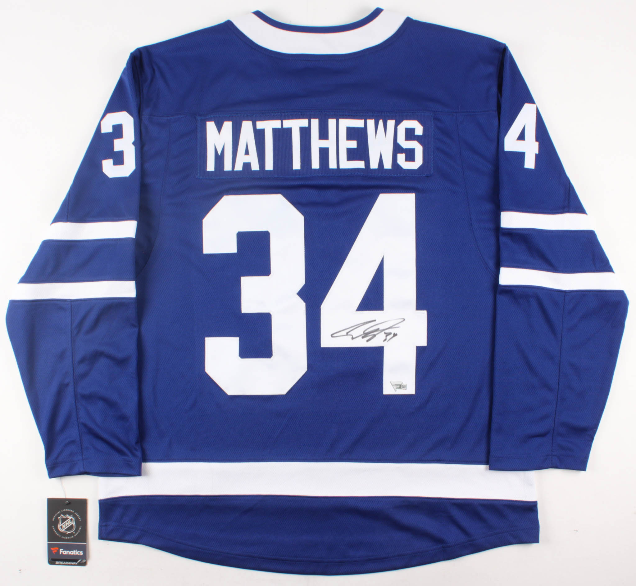 Fanatics on-ice style jersey. Everything is sewn on, size XL. Hand-signed in black felt-tip pen by Auston Matthews.