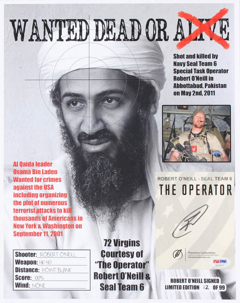 Robert O'Neill Signed LE "Bin Laden Wanted Dead or Alive" 11x14 Photo (PSA COA)
