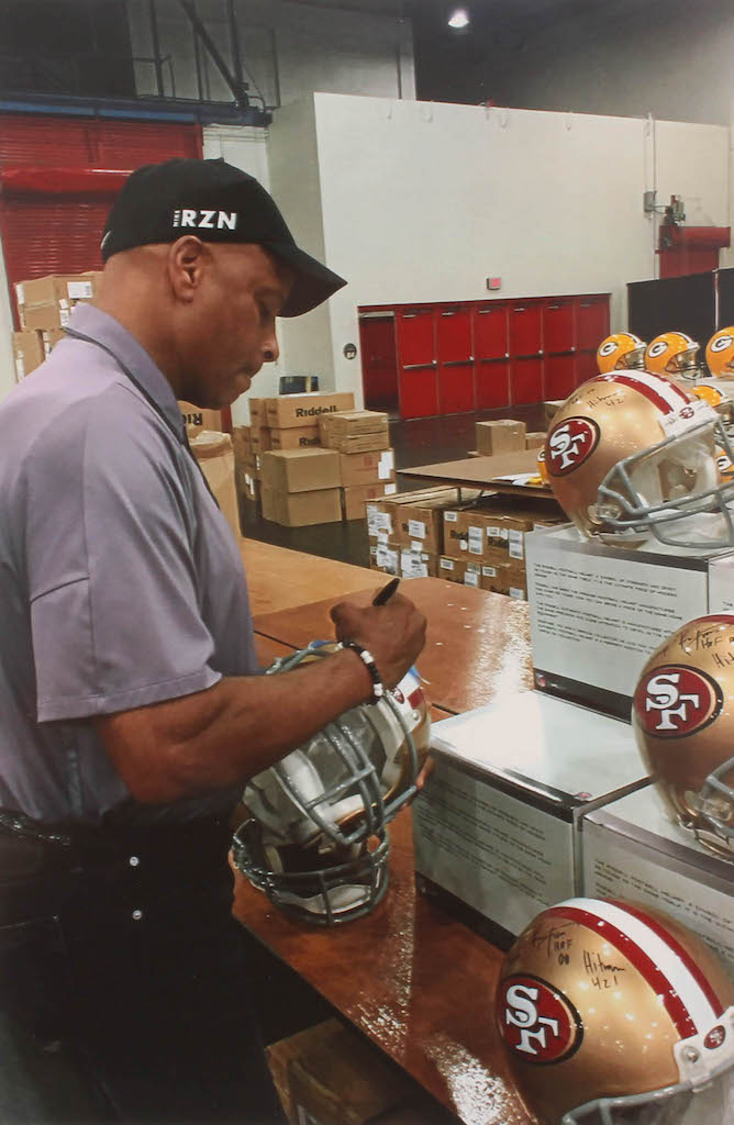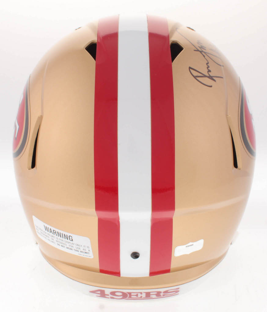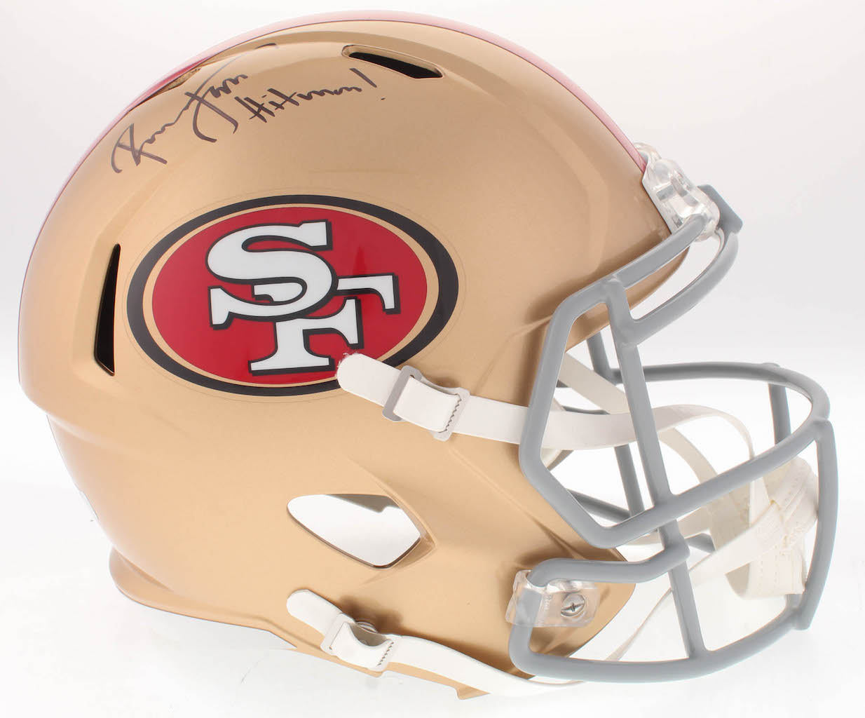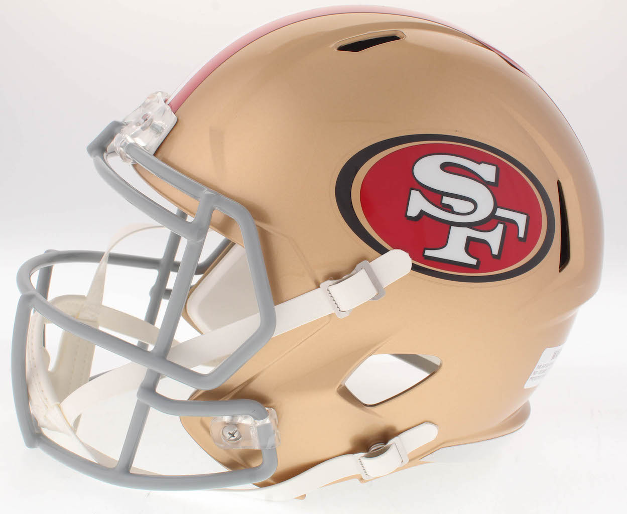 Riddell San Francisco 49ers full-size replica speed helmet. Hand-signed in black felt-tip pen by Ronnie Lott (HOF).