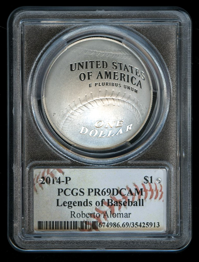 Roberto Alomar Signed Silver 2014-P $1 One-Dollar Baseball Hall of Fame Silver Coin, Legends of Baseball (PCGS PR 69 DCAM)