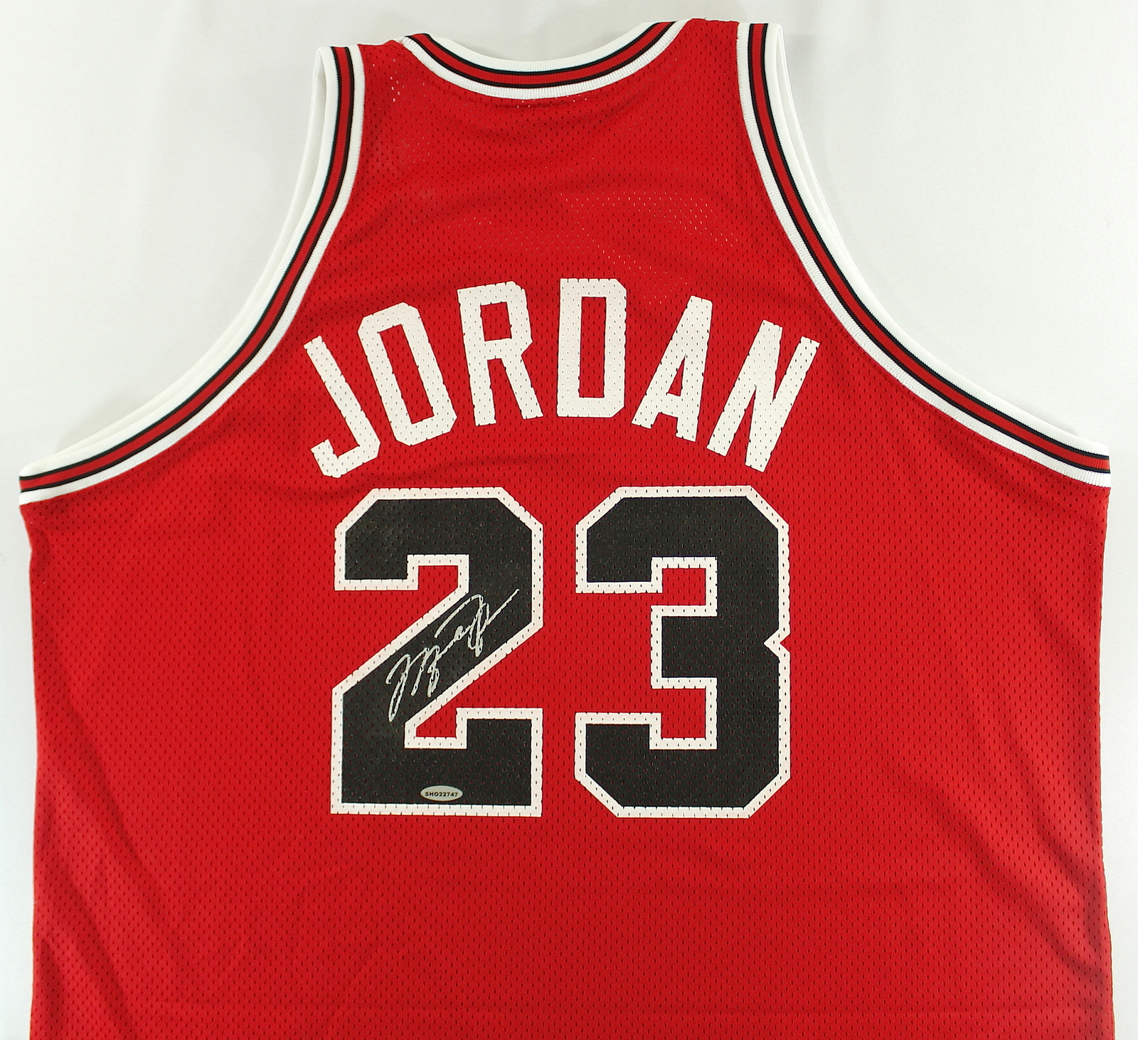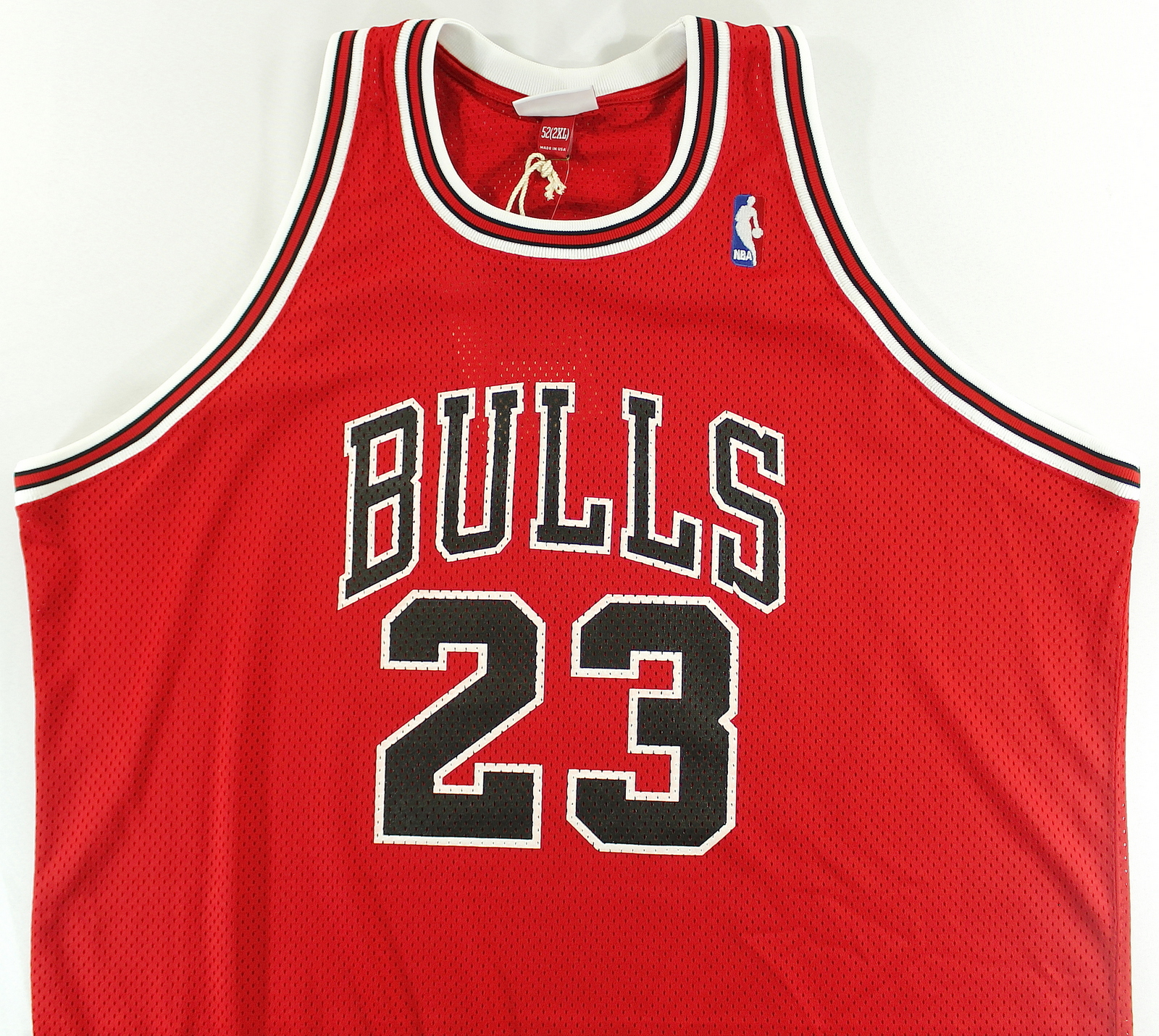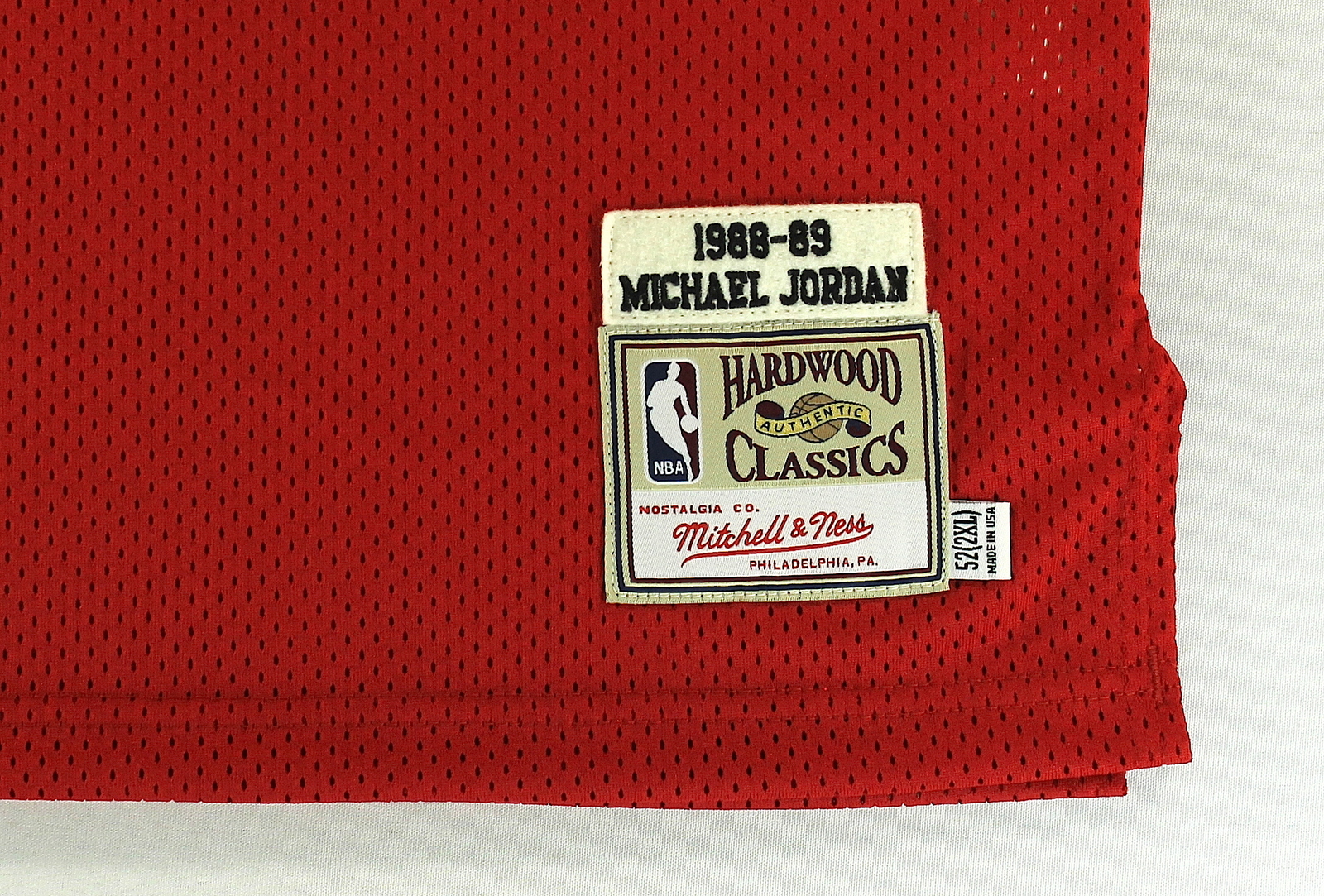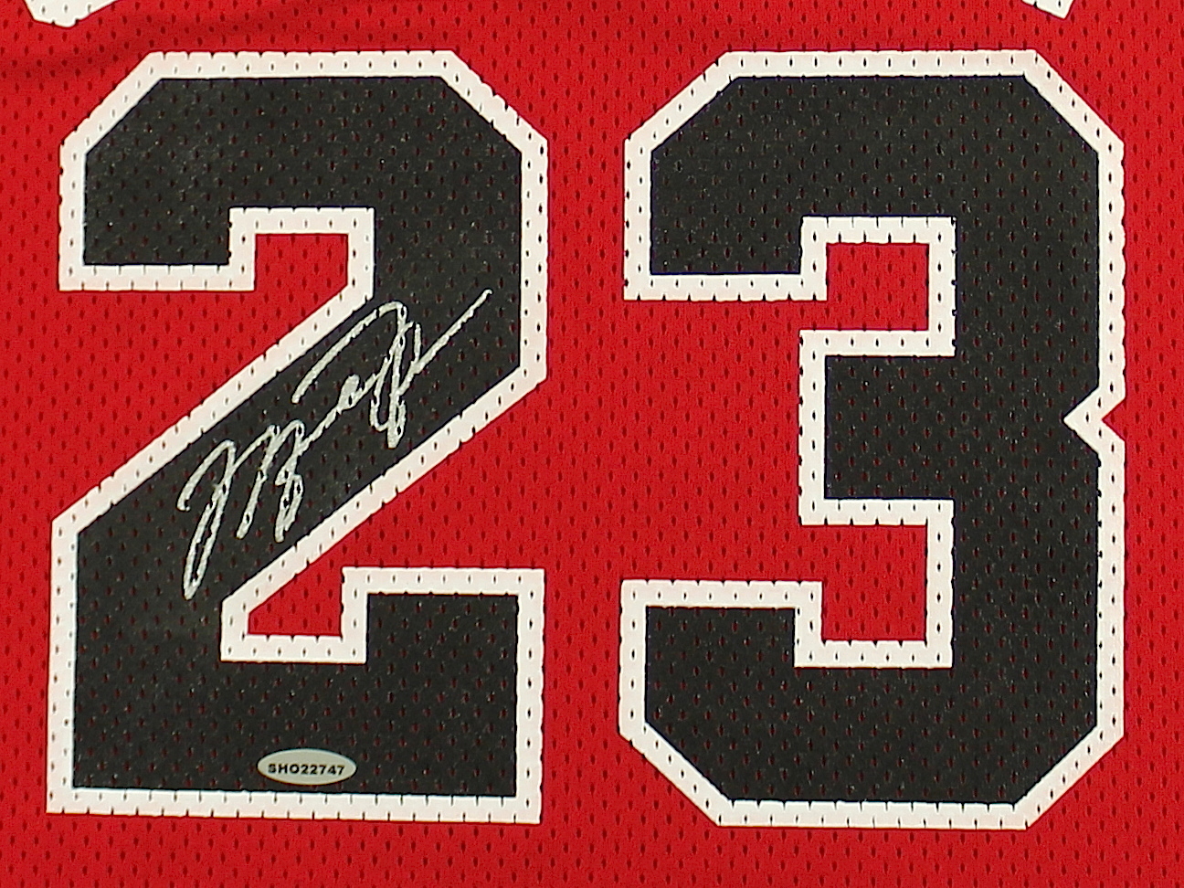Mitchell & Ness authentic 1988-89 jersey, size 52. Hand-signed in silver paint pen by Michael Jordan (Bulls HOF).