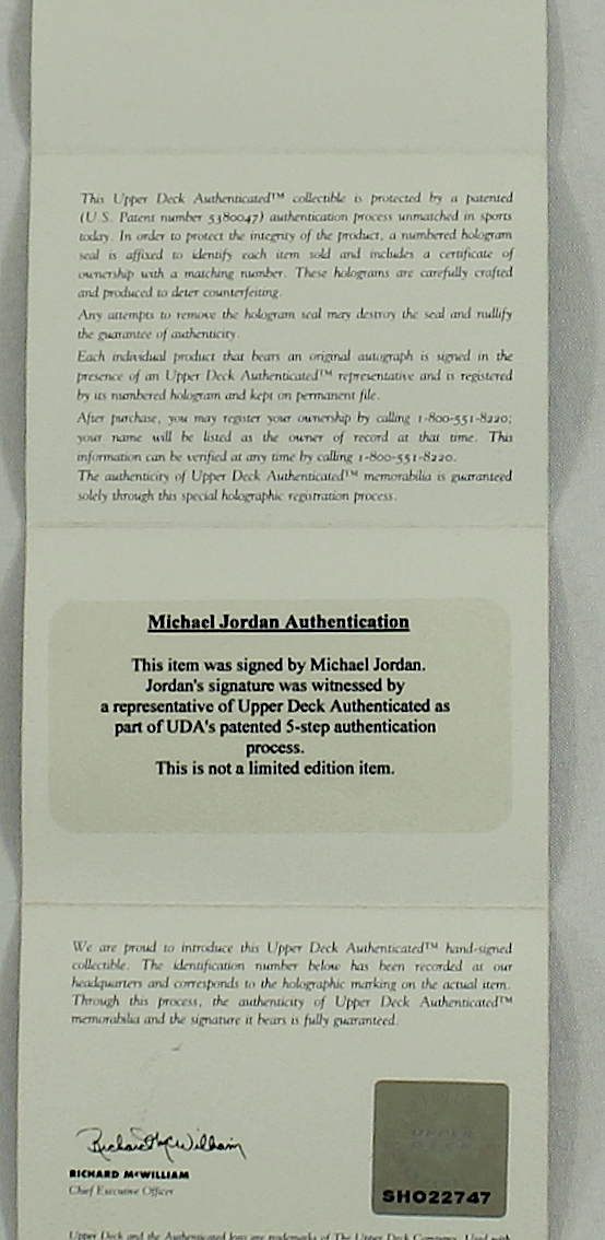 The autograph includes an official Upper Deck Authenticated (UDA) hologram and matching COA for authenticity purposes.