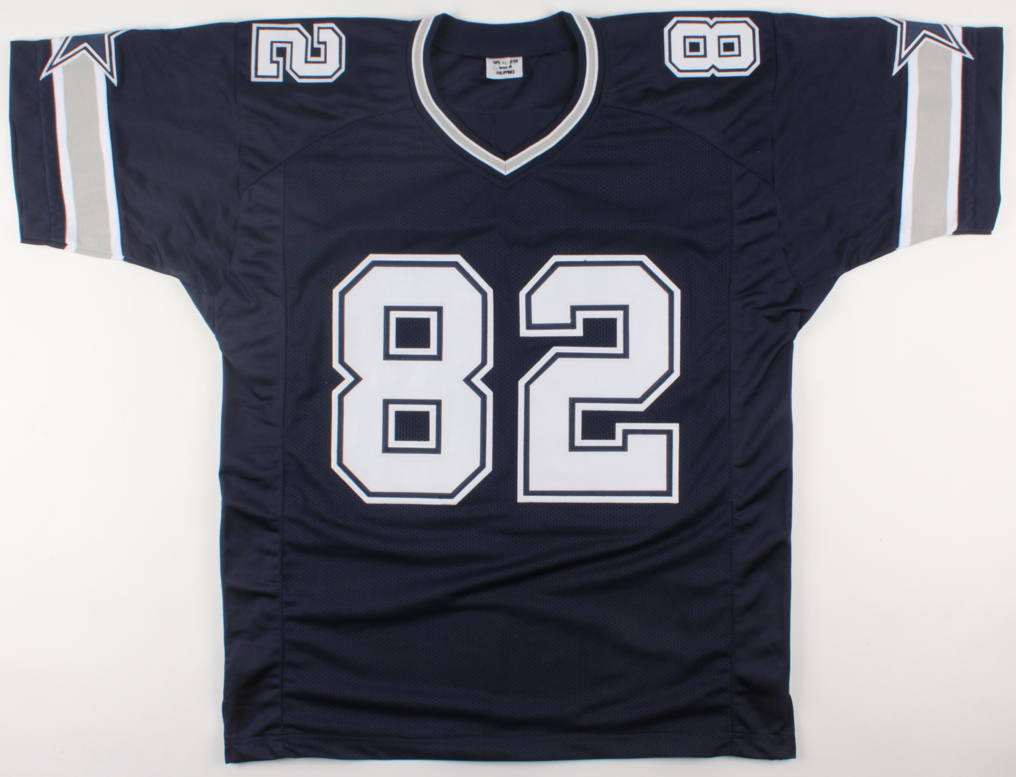 Custom on-field style jersey. Everything is sewn on, size XL. Hand-signed in black felt-tip pen by Jason Witten.