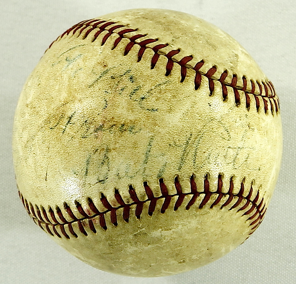 Vintage Official American League Baseball (Harridge President). Hand-signed by Babe Ruth (Yankees HOF D 1948). The autograph has been inscribed "To Bill, From" before the signature.