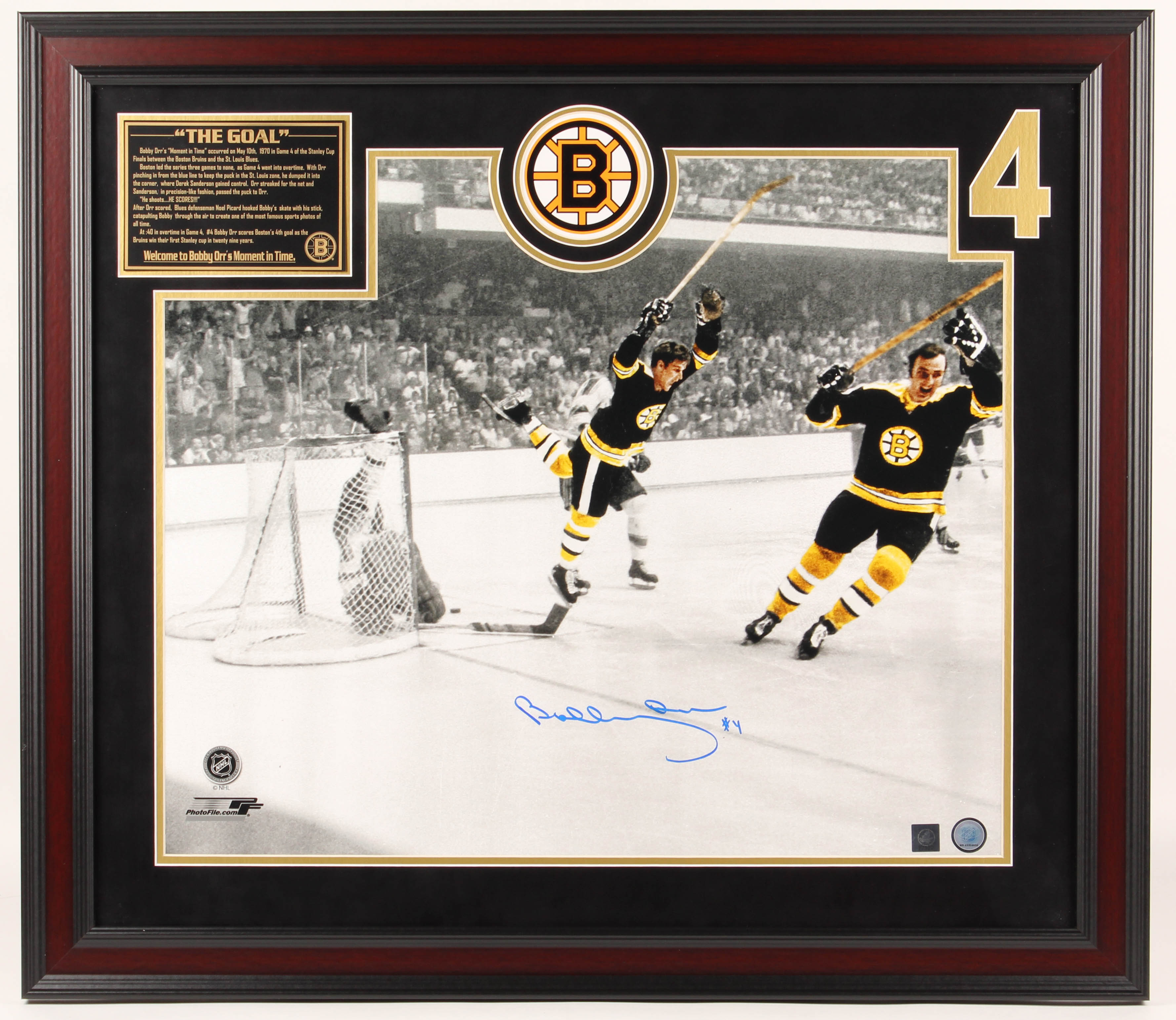 Bobby Orr Signed Bruins "The Goal" 27.5x31.75 Custom Framed Photo Display (Great North Road COA)