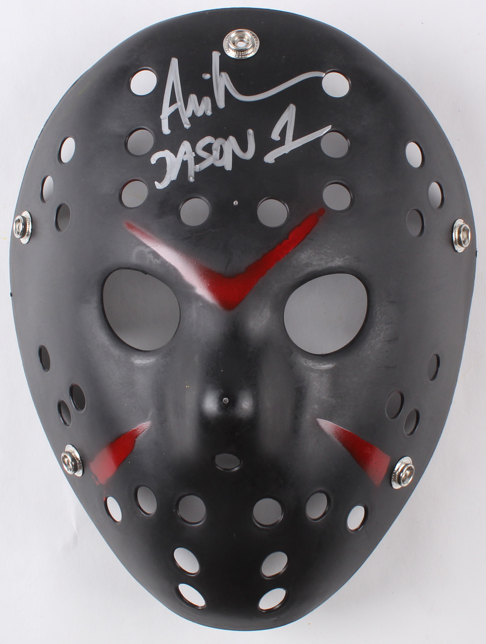 Full-size custom replica "Jason" mask. Hand-signed and inscribed by Ari Lehman (Jason).