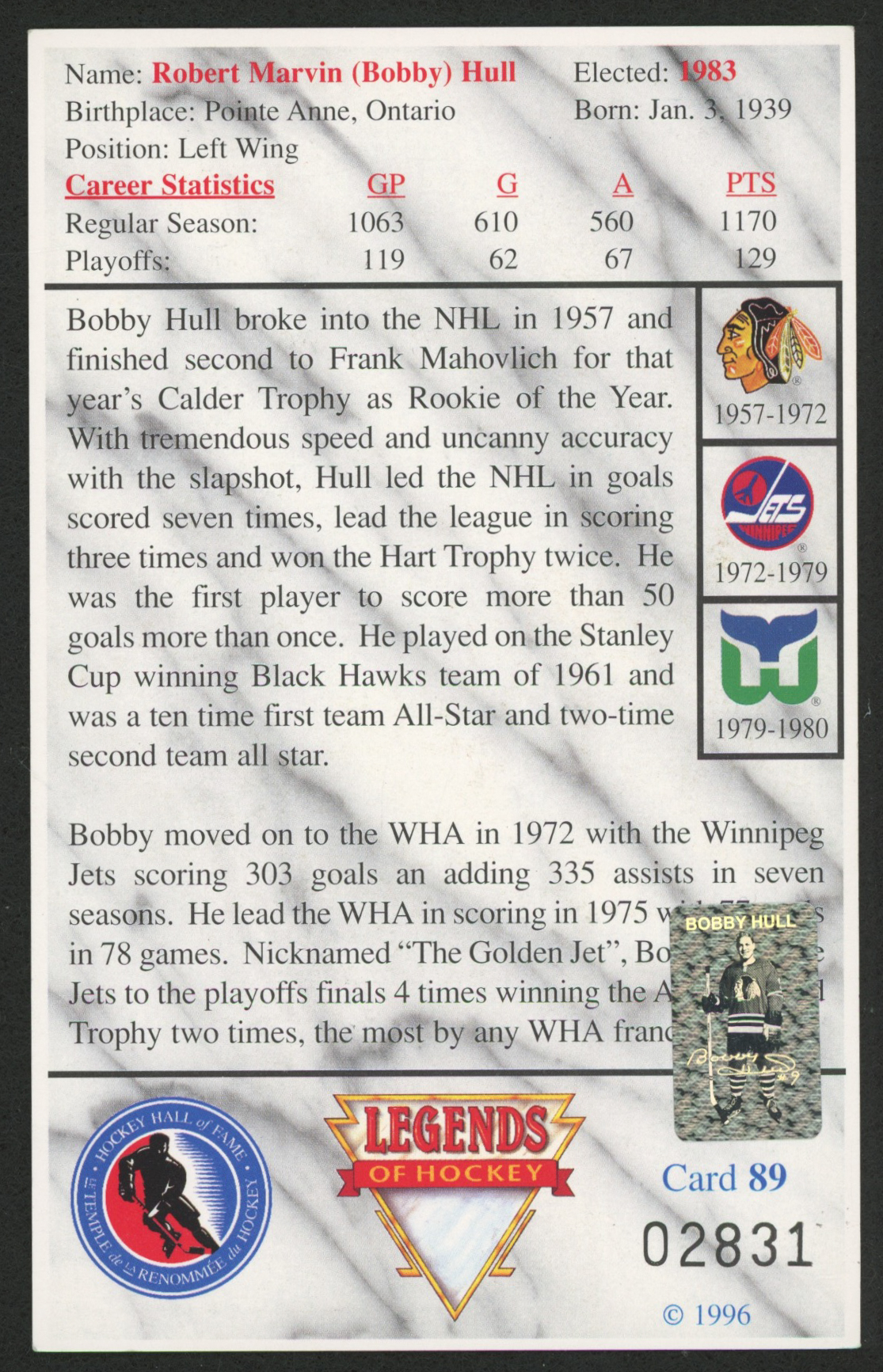Bobby Hull Signed 1996 Hall of Fame Legends of Hockey #89 Inscribed "HOF 1983" (Hull Hologram)