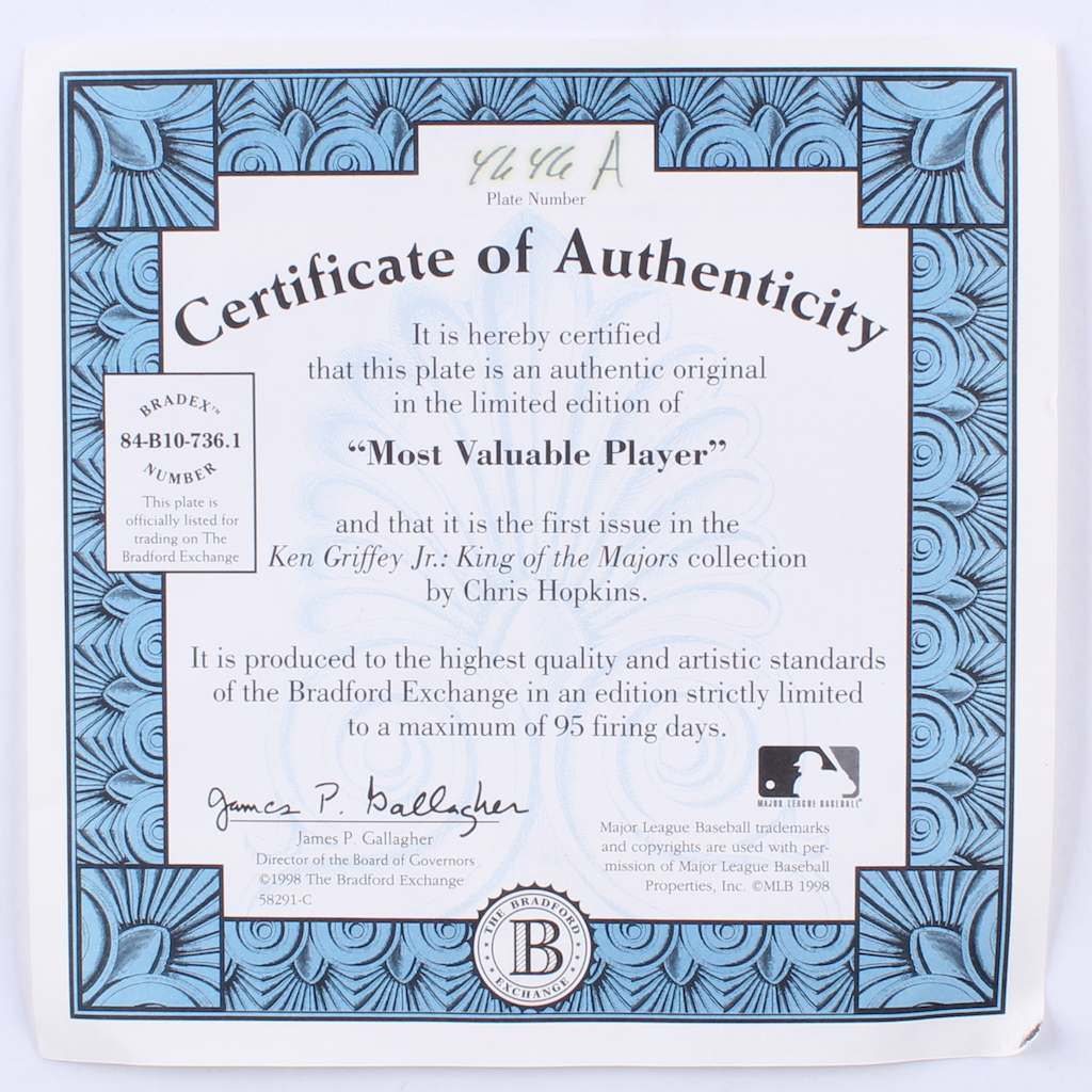 Ken Griffey Jr. Mariners LE "Most Valuable Player" Bradford Exchange Porcelain Plate