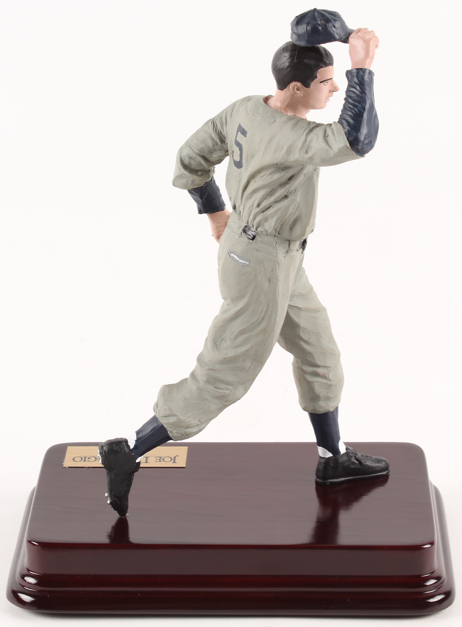 Joe DiMaggio (D. 1999, Yankees, HOF) figurine measures approximately 8" tall. Display comes with original box.