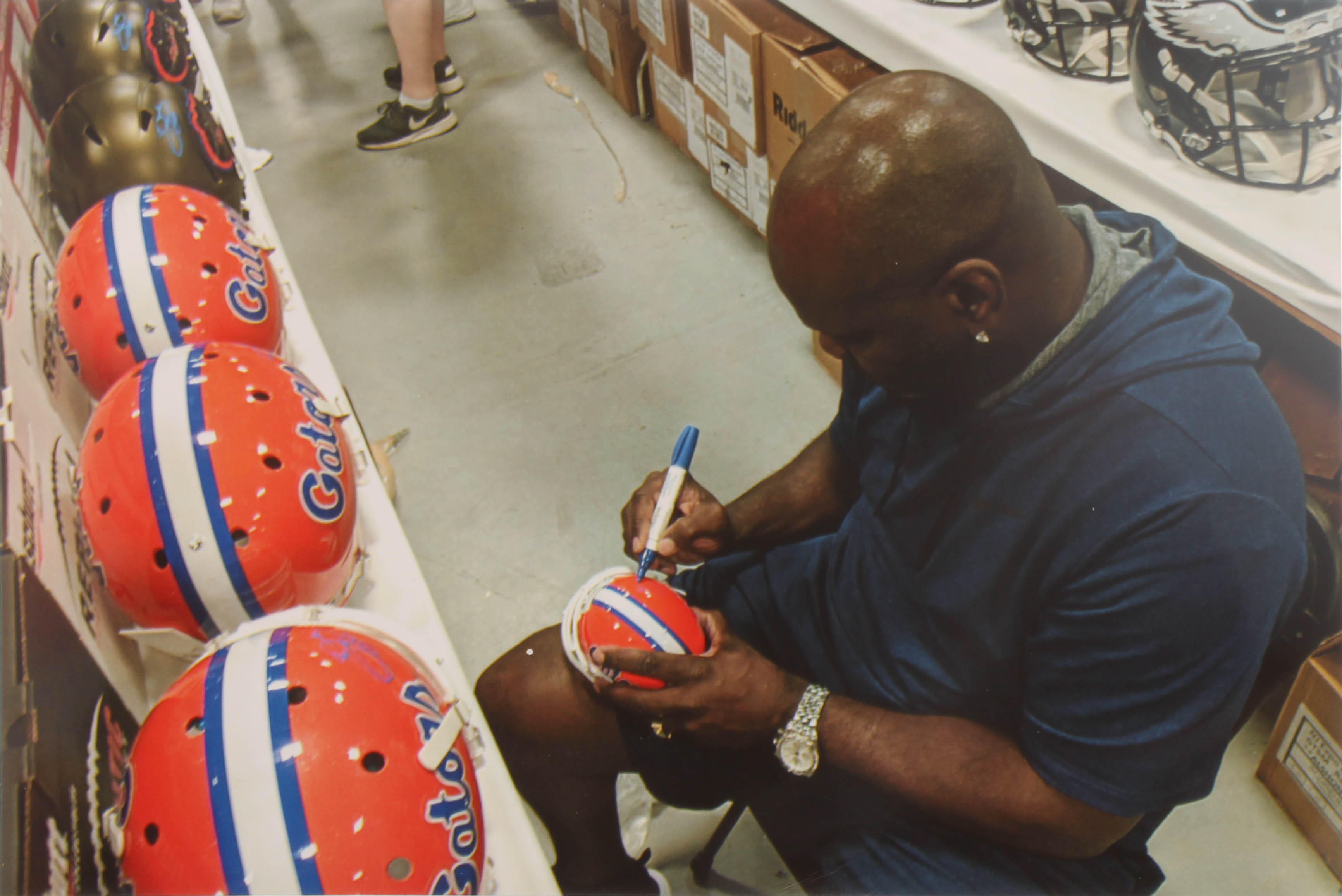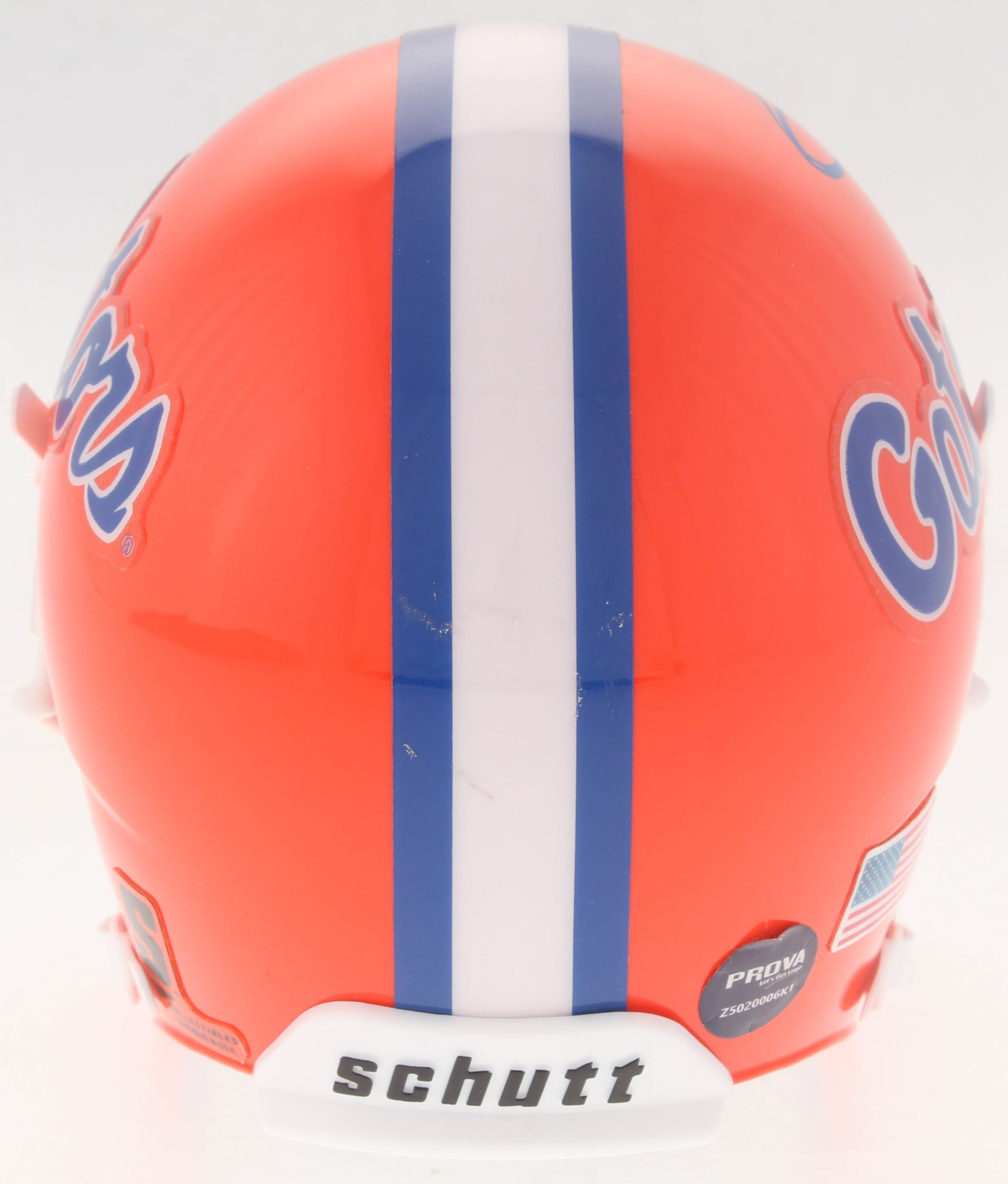 Schutt Florida Gators mini helmet. Hand-signed in blue paint pen by Emmitt Smith (HOF).