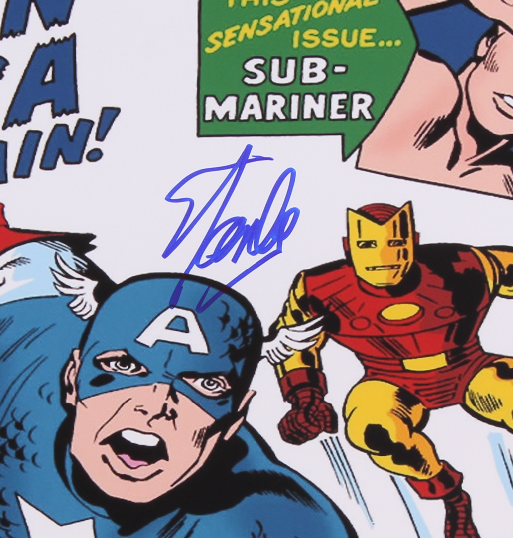 Photo measures 16" x 20" in size and has been hand-signed in blue felt-tip pen by Stan Lee (D 2018).
