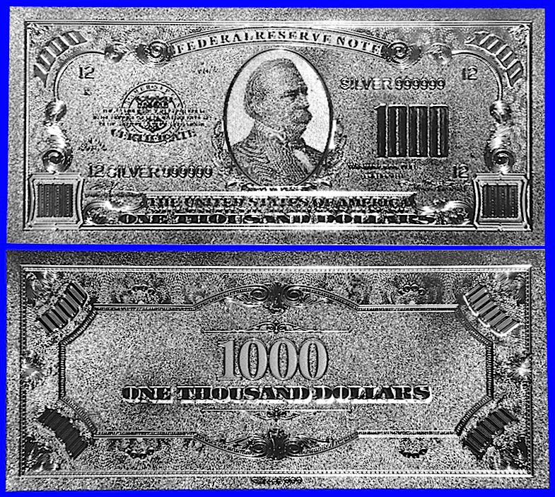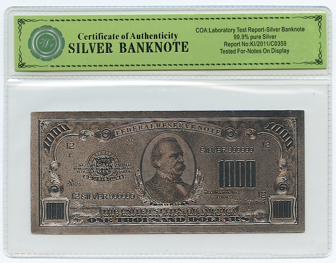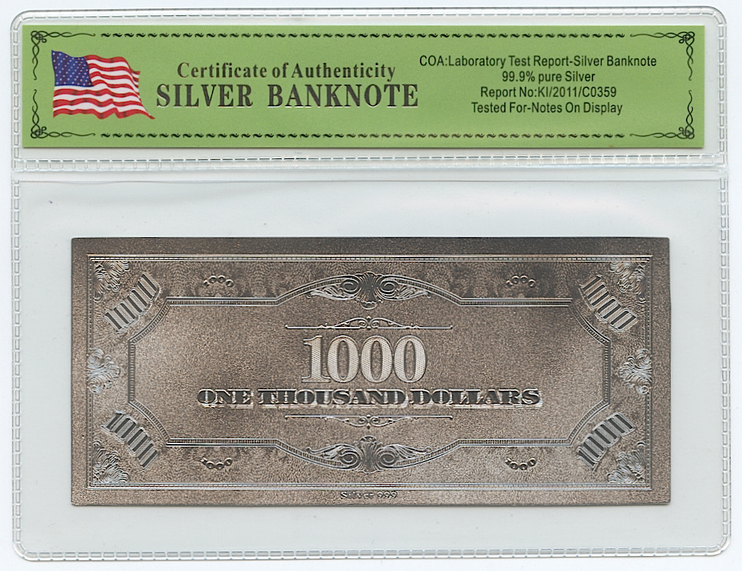 Created with 99.9% pure silver. Banknote is actual size of a US bill and individually die-struck & hot pressed on polycarbonate to give it durability and strength.