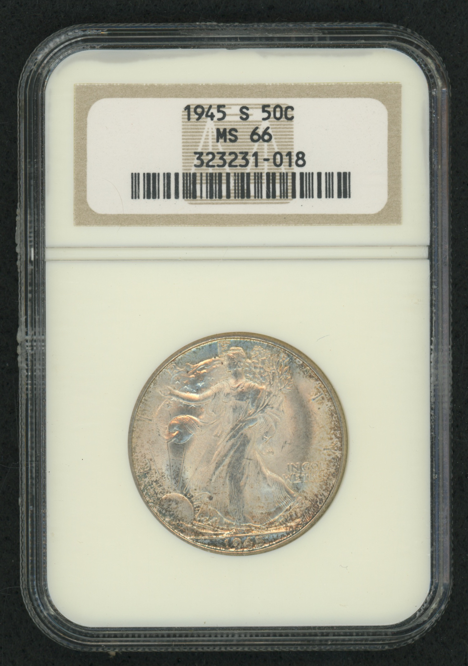 1945-S 50¢ Walking Liberty Silver Half Dollar (NGC MS 66)