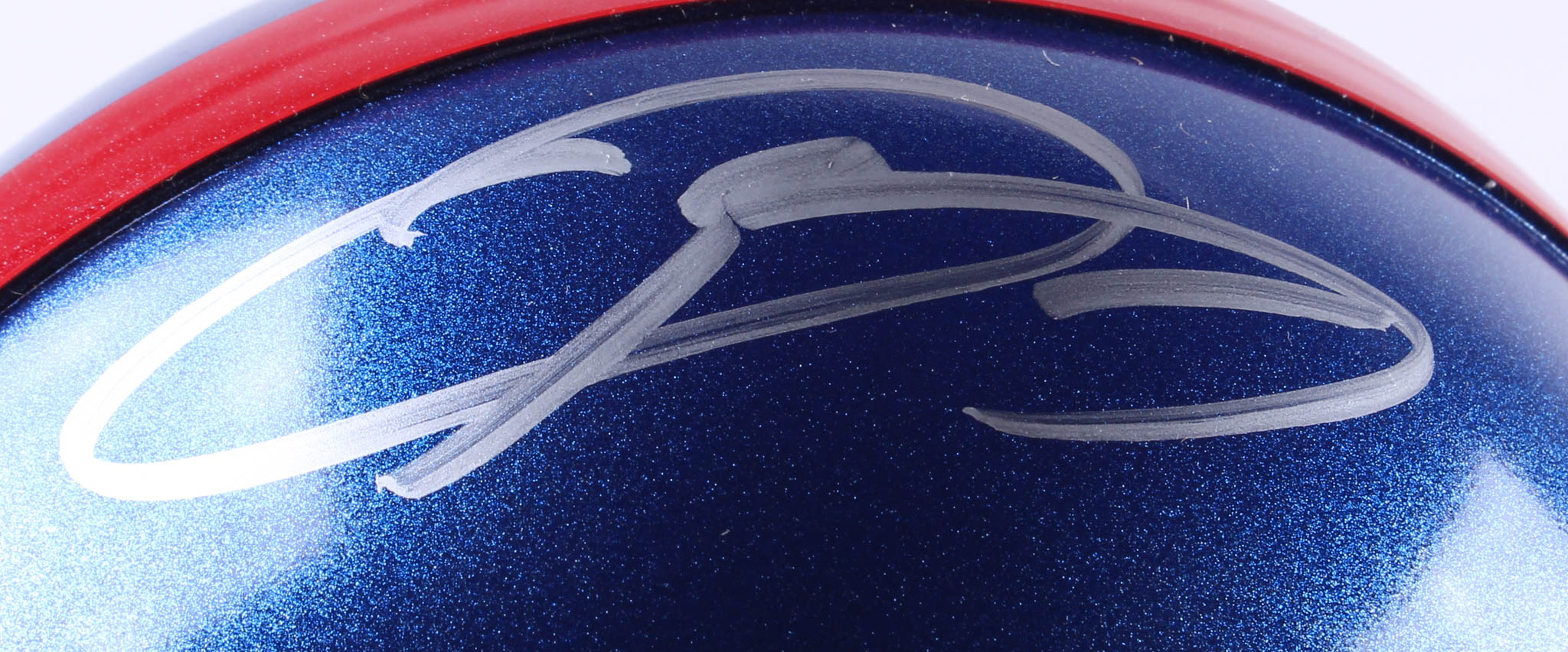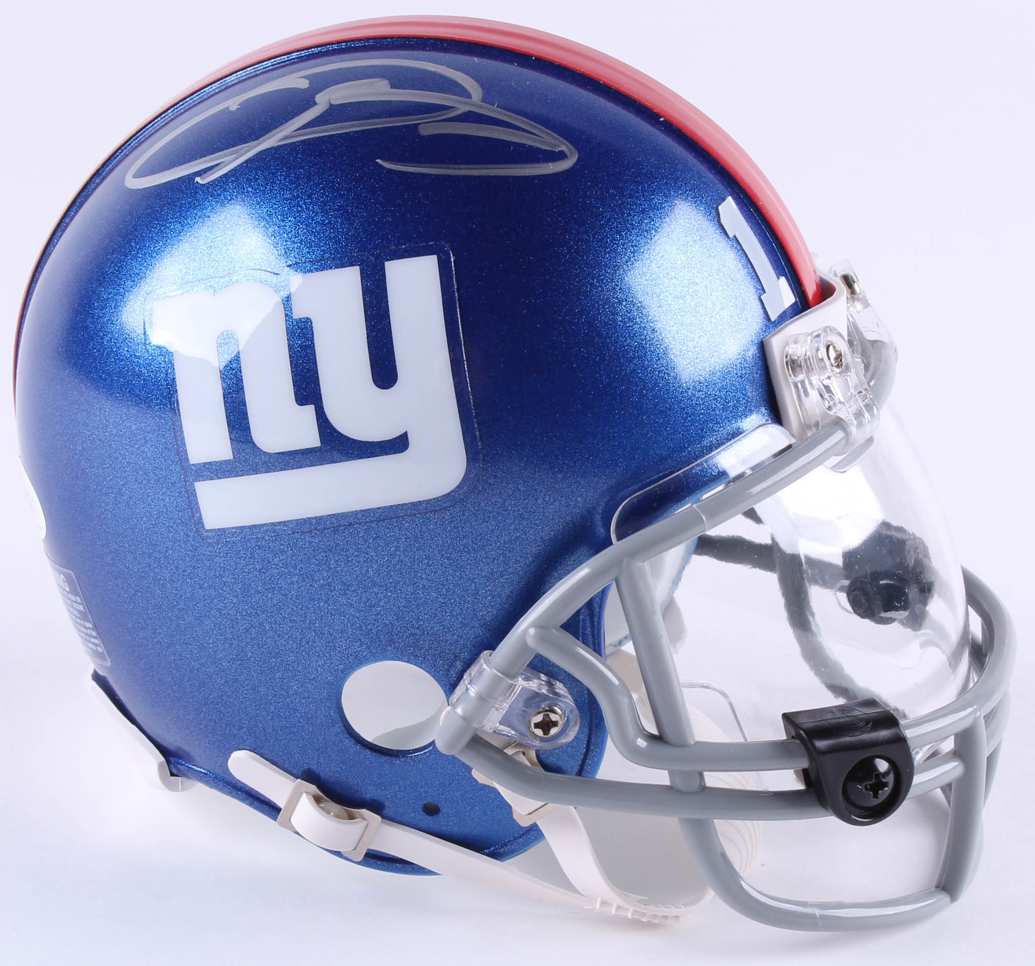 New York Giants mini-helmet with clear visor. Hand-signed in silver paint pen by Odell Beckham Jr.