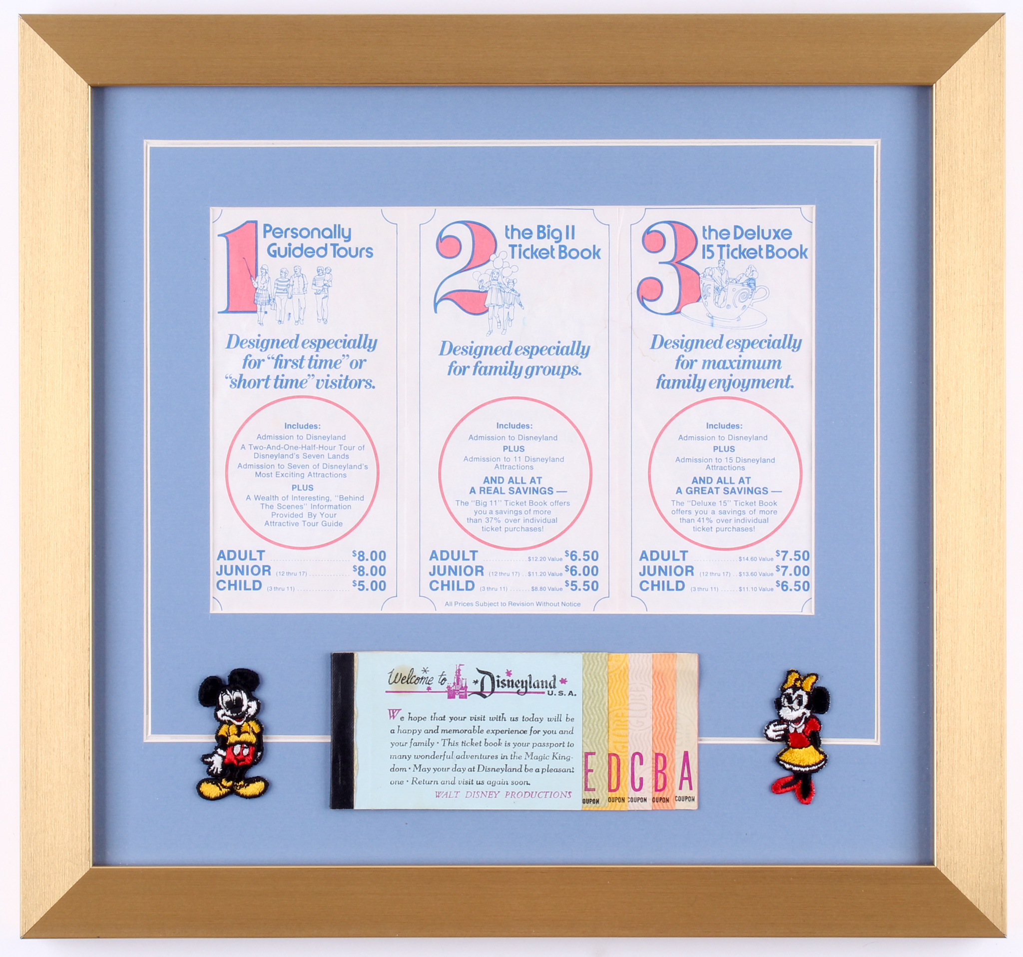 Disneyland 15x16 Custom Framed Poster Display with Ticket Book and (2) Disney Patches