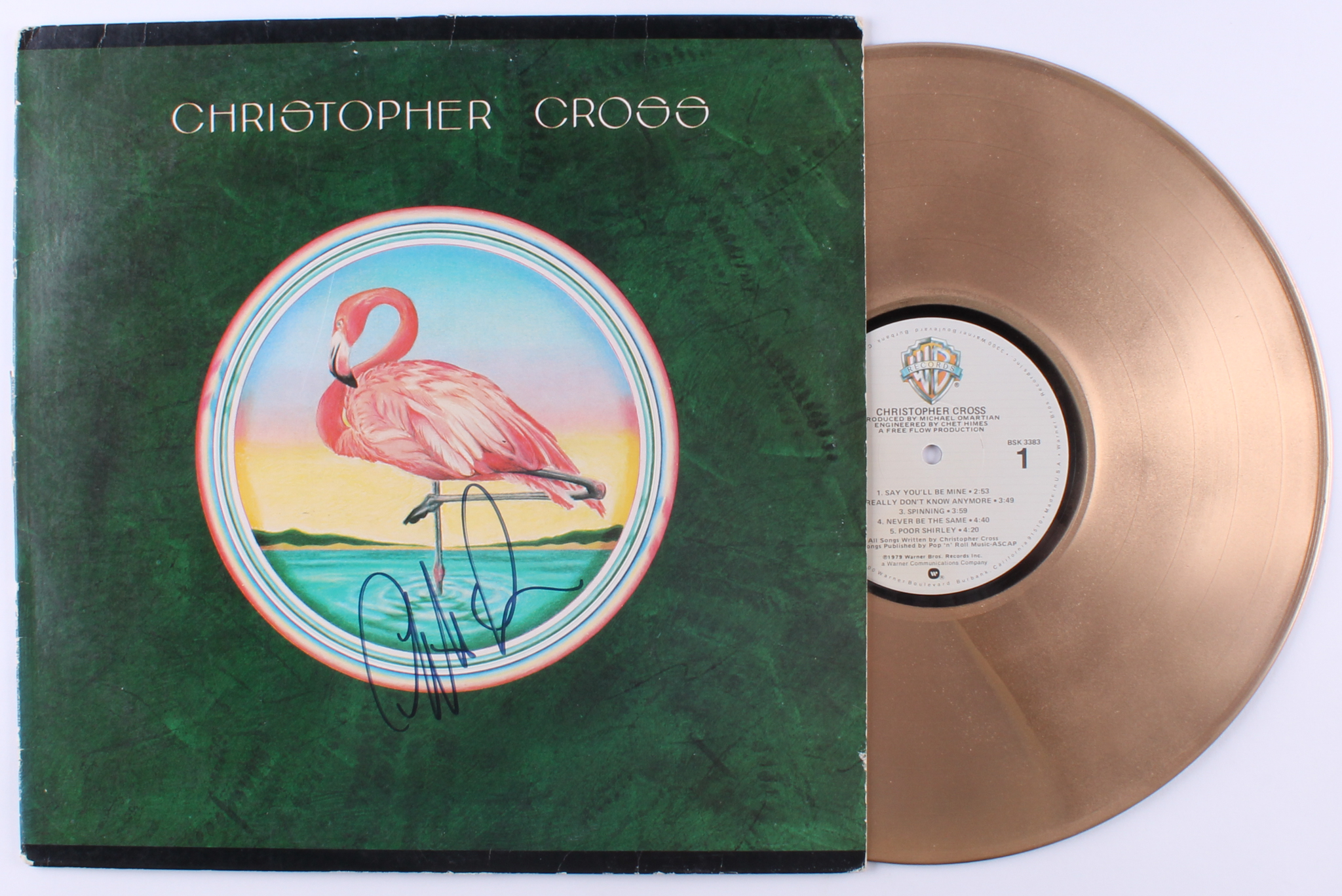 Christopher Cross "Christopher Cross" vinyl record album has been hand-signed in blue felt-tip pen by Christopher Cross. Please note that the vinyl record is included with this auction.